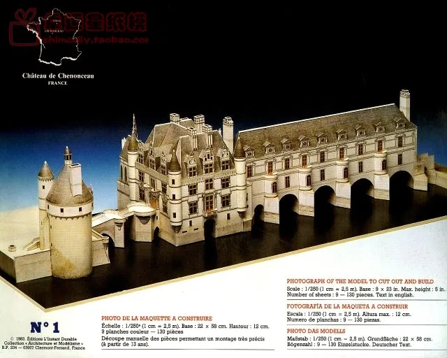 3D бумажная модель сделай сам, ручная работа, замок ченонсо во Франции