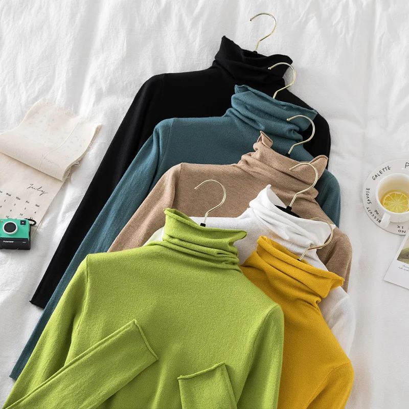 Красивый пуловер с воротником под горло,Трикотажная ткань очень мягкая и драпированная,Дизайн завивки делает весь свитер более простым и текстурированным, модифицированным дизайном манжеты,Вся одежда из джерси в Корейском стиле.