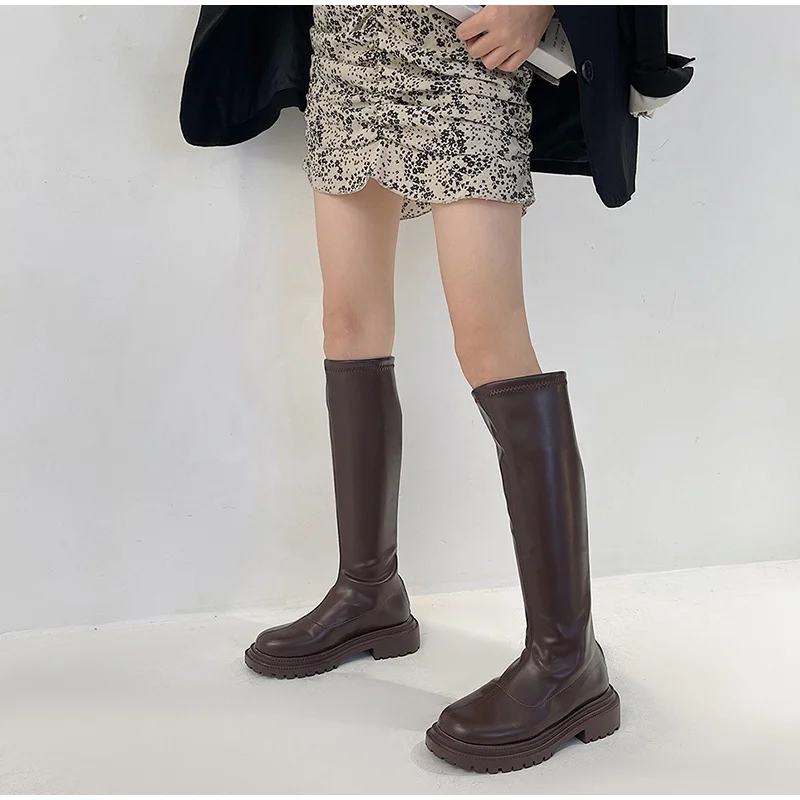 Женские сапоги до колена, модные элегантные мягкие сапоги из искусственной кожи на платформе с круглым носком, однотонная удобная женская обувь на толстой подошве, осень 2021 icon star icon star icon star icon star icon star