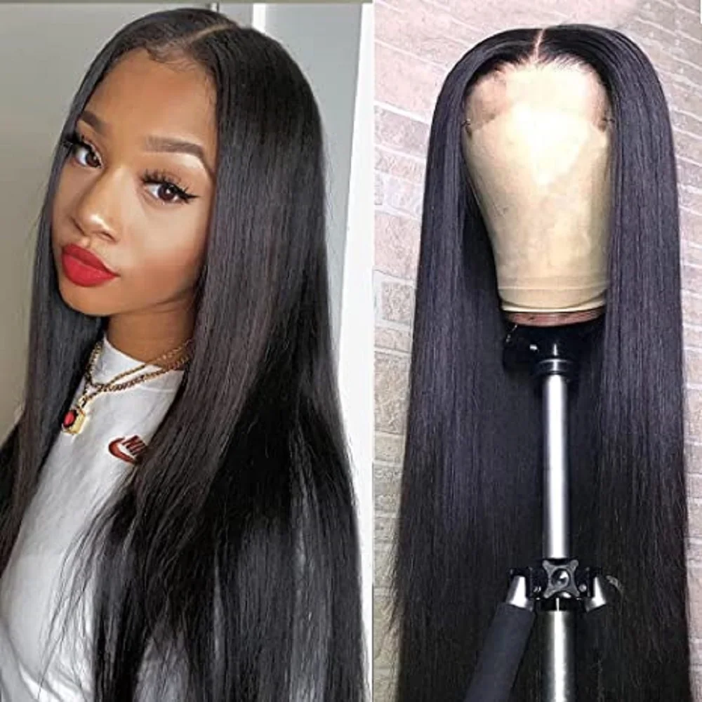 Парики из натуральных прямых волос на сетке, 150%, 13X4, для чернок...