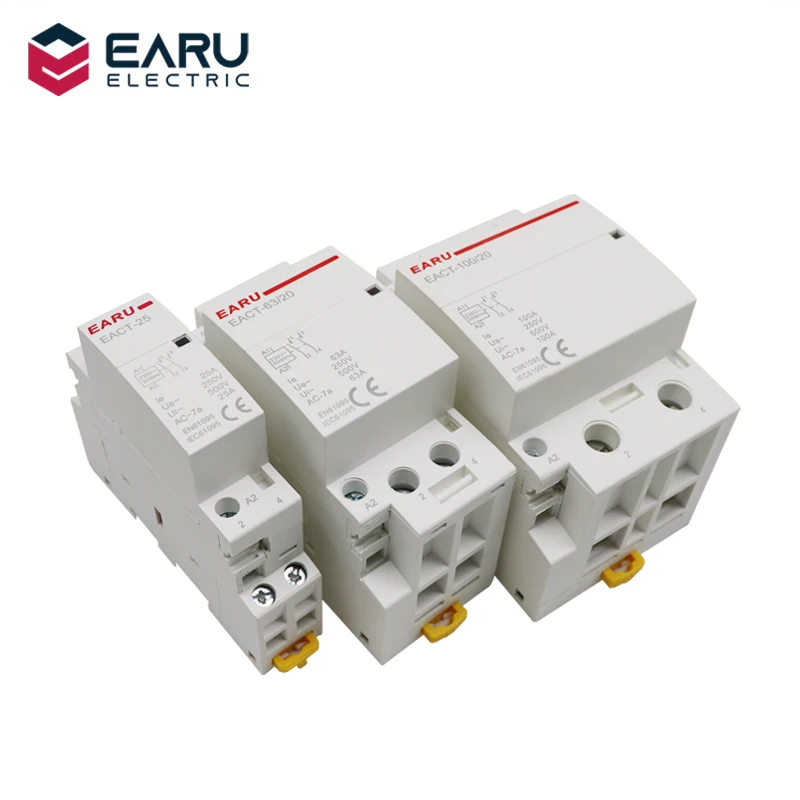 EACT2P25/63/100Домашний контактор переменного тока в Основном предназначен для цепей переменного тока 50 Гц или 60 Гц с напряжением 230 В. Номинальное рабочее напряжение при использовании переменного тока 7 А, Номинальное рабочее напряжение до 230 В, Номинальный рабочий ток до 25 А, Номинальное рабочее напряжение при использовании переменного тока 7 в, номинальный ток до 10 А. Использование в разрывной способности при цепи ниже 6 ка. Для дистанционного подключения или разрыва цепи.