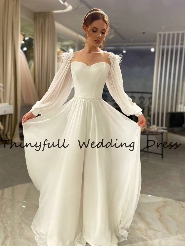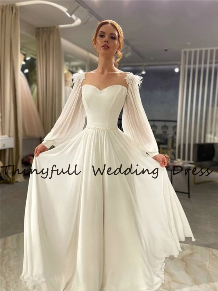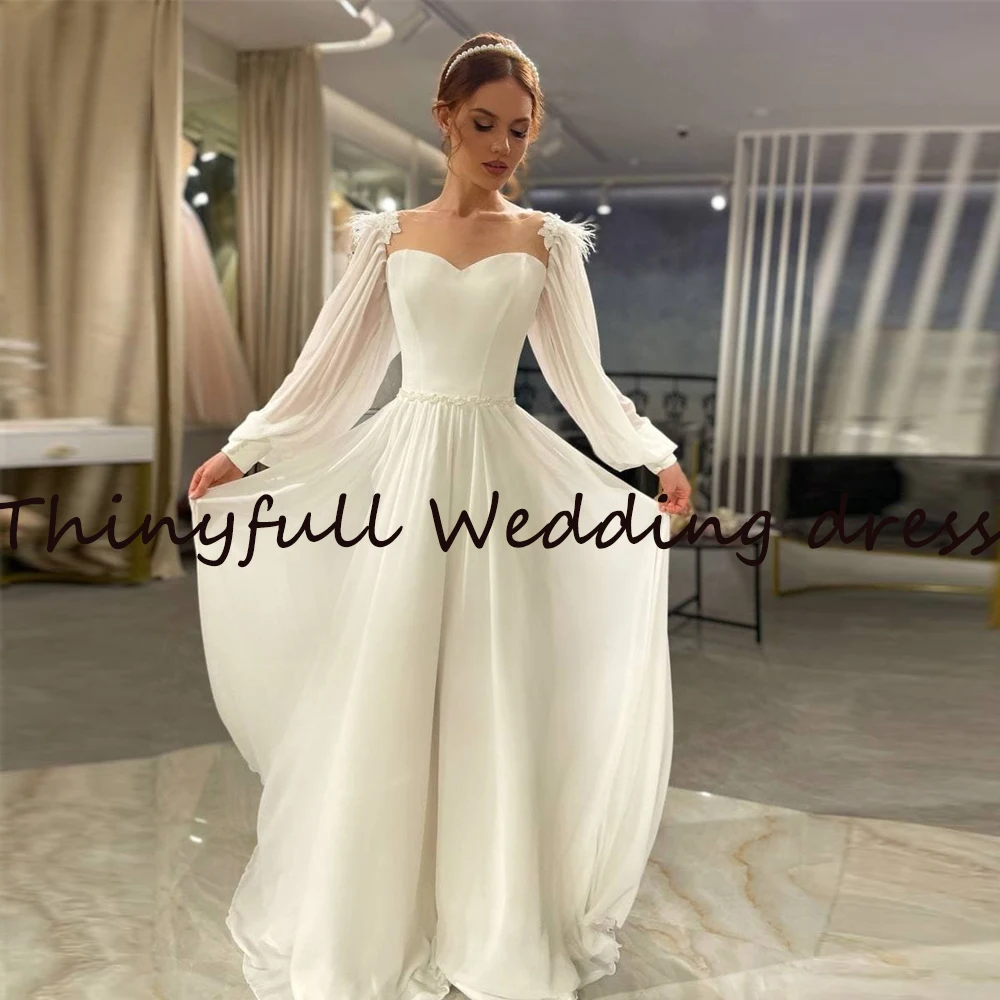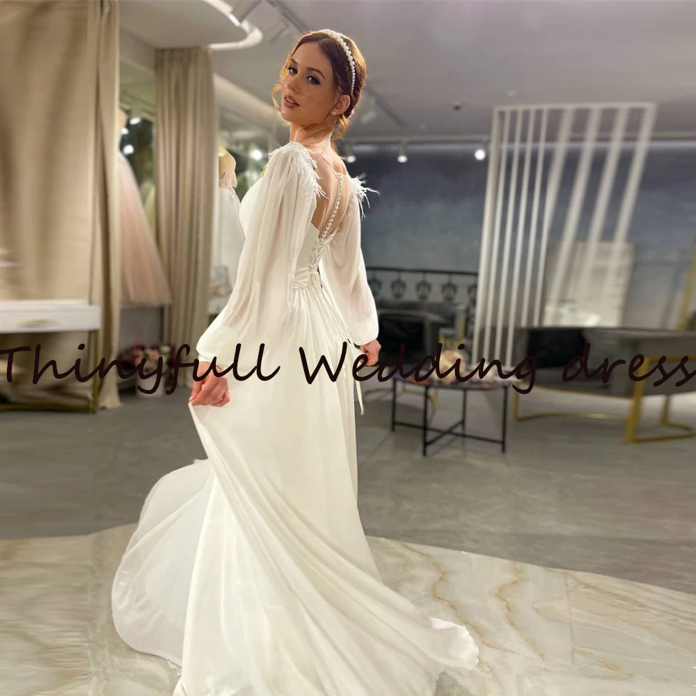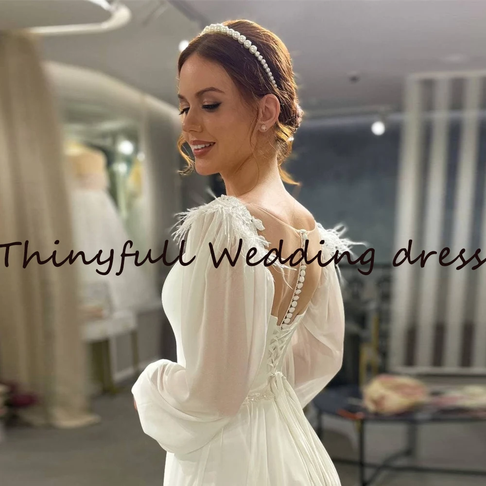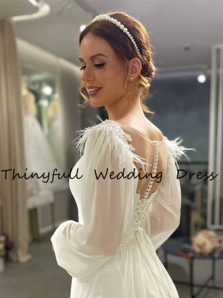 Современные свадебные платья-трапеции с длинными рукавами и перьями, пляжные свадебные платья до пола в стиле бохо для невесты, свадебные платья, свадебное платье, свадебное платье