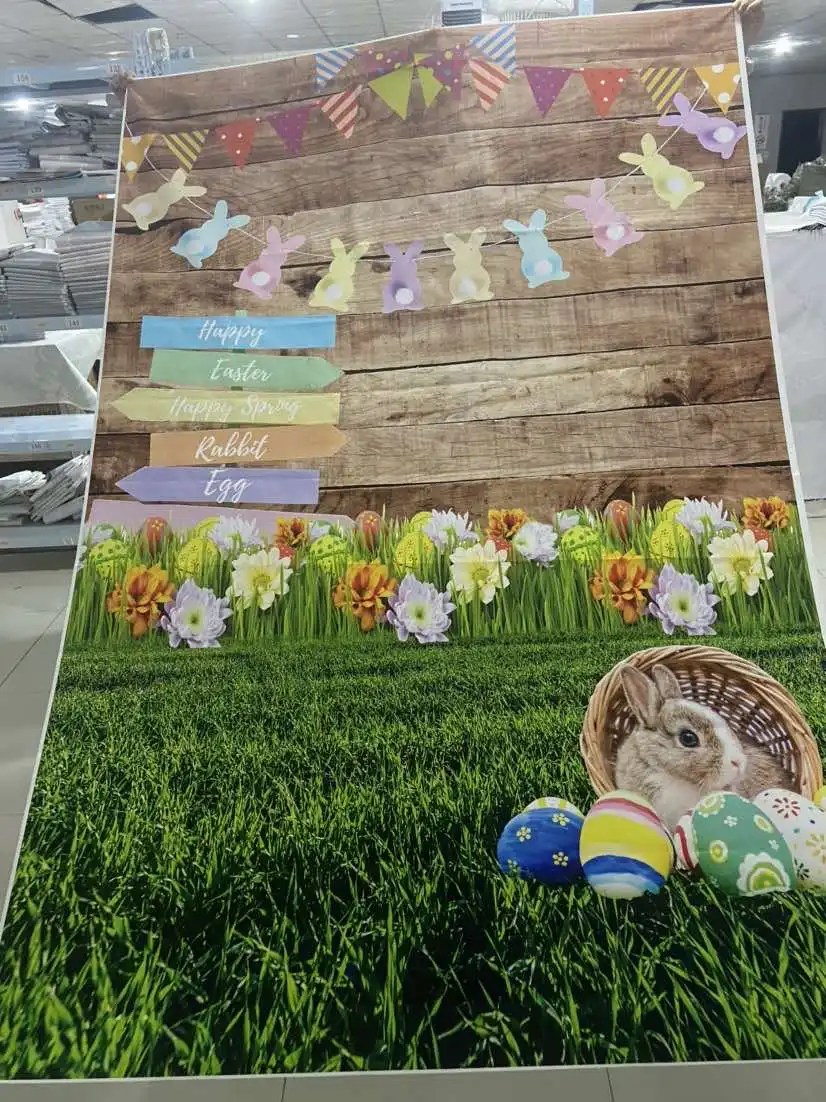 Фон для фотосъемки новорожденных с изображением кроликов яиц цветов травы на весну и Пасху флаг "Кролик"