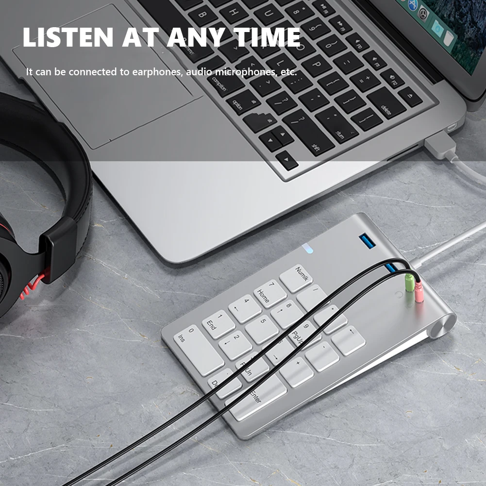 18 клавиш цифровая клавиатура Numpad USB3.0 концентратор цифровая клавиатура для учета ноутбука Настольный ПК компьютерХарактеристика:Пуговица шоколадного цвета, приятная на ощупьКонструкция ножниц, прочнаяВысокоскоростная передача данных USB3.0, переход на док-станцию3,5 мм аудио/Микрофон интерфейс, может быть подключен к наушникам, аудио микрофоны и т. д., так и для офиса и развлечений.USB plug and play, без привода, без переключения, стабильное соединение.Спецификация:Цвет: серебристыйМатериал: АБС-пластикВход: USBВыход порт: USB3.0 * 2 + 3,5 мм аудио/микрофонаДлина линии: 67 смРазмер изделия: 155*95*21 ммПосылка Размер: 19,5*10,5*3 смВес брутто: 216 гПримечание:В связи с различиями мониторов и эффектами освещения реальный цвет товара может немного отличаться от цвета на фотографиях. Спасибо!Возможны отклонения в 1-2 см вследствие измерений вручную.