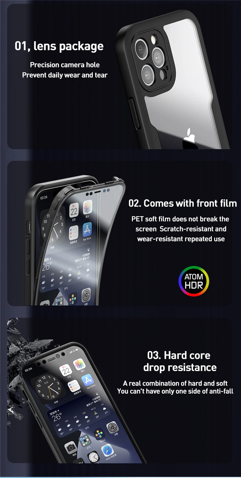 360 полная защита корпуса прозрачный чехол для телефона iPhone 13 12 11 Pro Max X XR XS 7 8 Plus передний экран противоударный мягкий чехол