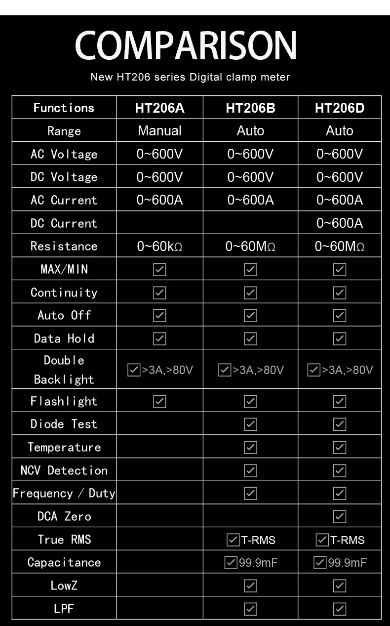Плоскогубцы Амперметр HT206AHT206BHT206D AC DC Цифровой мультиметр-...
