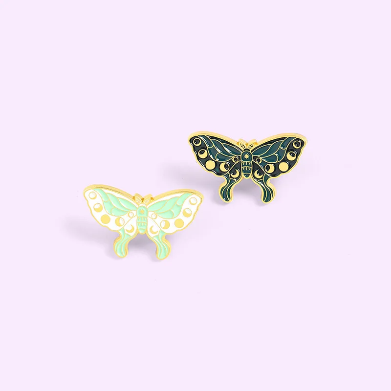 Жесткие эмалевые значки в виде лунной фазы, бабочки, насекомое ночн...