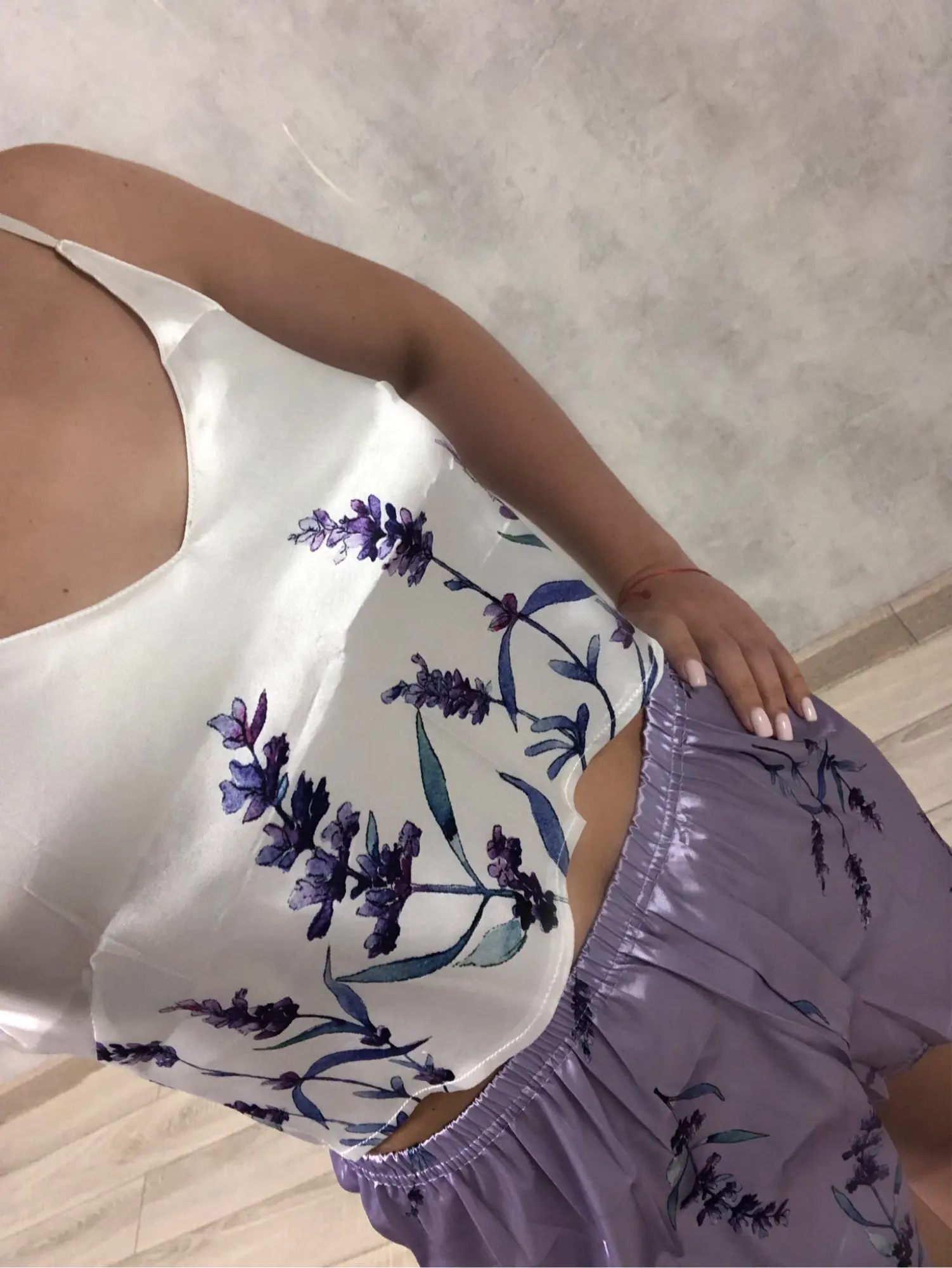 Пижама женская атласная с V-образным вырезом и цветочным принтом