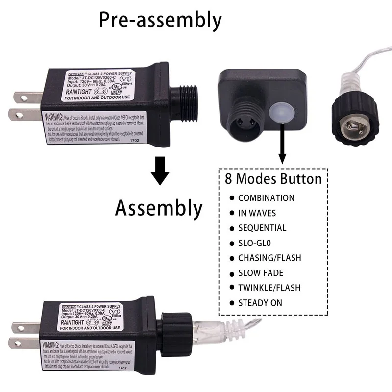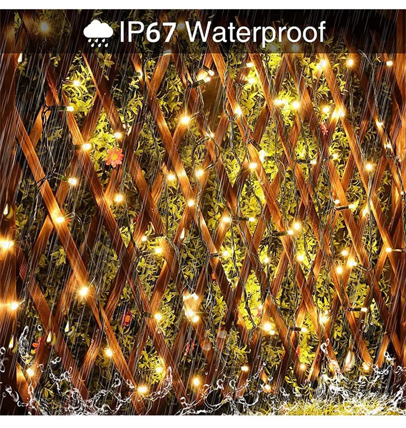Название продукта: 30 в низковольтная лампа Материал изделия: ПВХ + медная проволока Светодиодный цвет лампы: теплый светильник/цветной светильник/белый светильник Цвет провода: темно-зеленый провод Кол-во светодиодный ламп: 200/300/500/1000 огни Светильник длина веревки: 23/33/53/103 метров Водонепроницаемость: lP67 Сертификат продукта: CE/ ROHS/FCC Трансформатор спецификация: 30V/3,6 W (по умолчанию, вилка стандарта США, а также другими техническими требованиями, обращайтесь в службу поддержки клиентов)