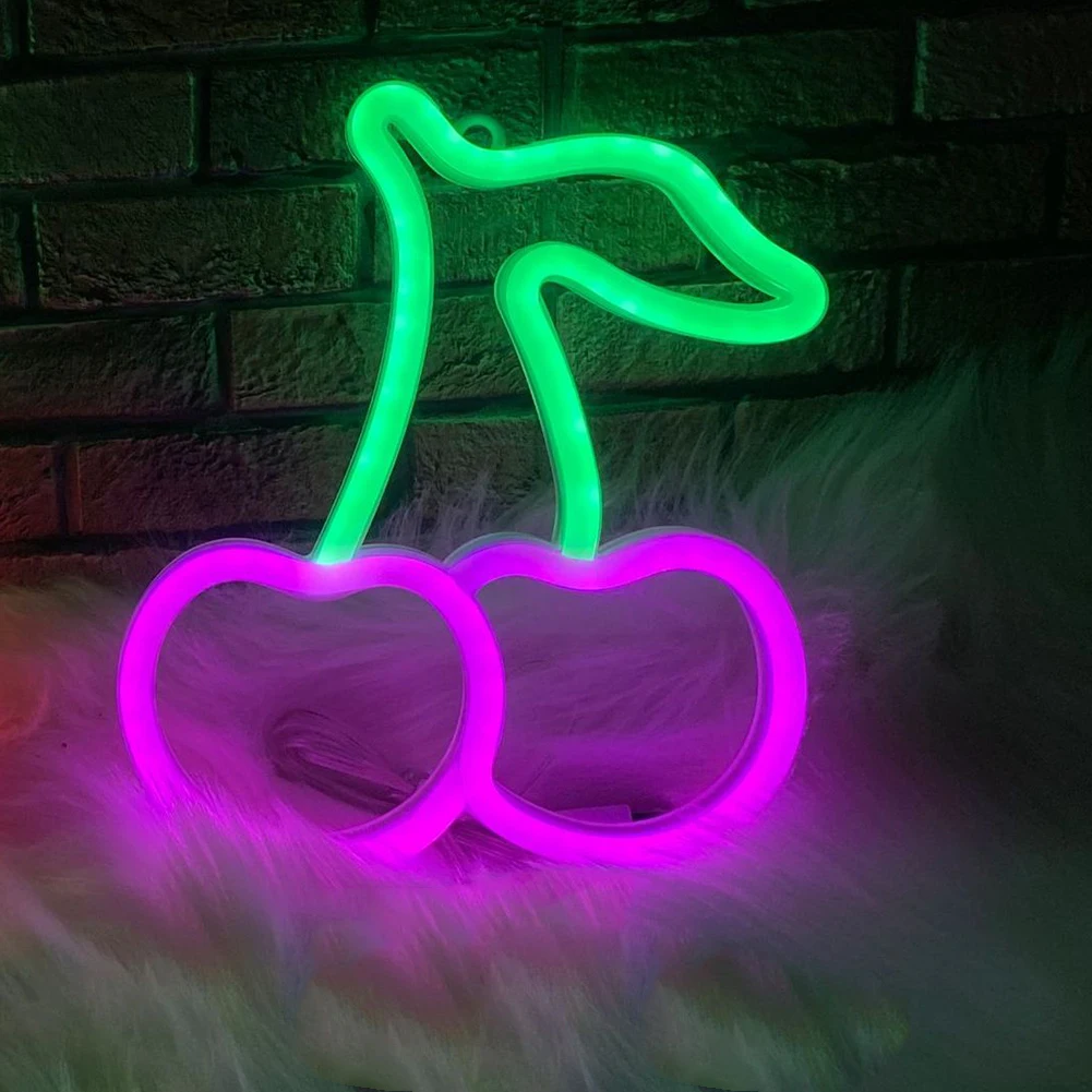 Неоновая лампа-Вишня 1 шт., моделирующая лампа для спальни для девочек, креативное украшение комнаты, подвесной знак, праздничный кулон