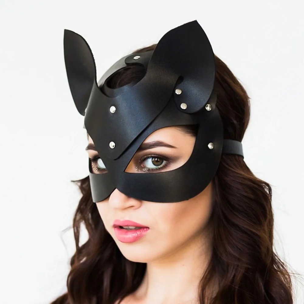 Сексуальная кожаная маска для косплея кошачьи уши аниме аксессуары ...