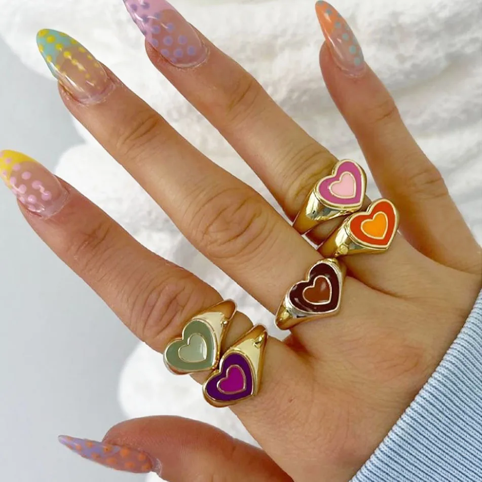 Модное корейское кольцо Y2K для девочек-подростков, женское разноцветное милое эмалированное кольцо в форме капли, подходящее кольцо, Двухслойное ювелирное изделие в форме сердца
