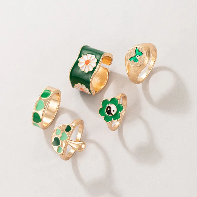 Комплект колец Tocona 5 шт.компл. с зеленым грибом бабочкой для жен...