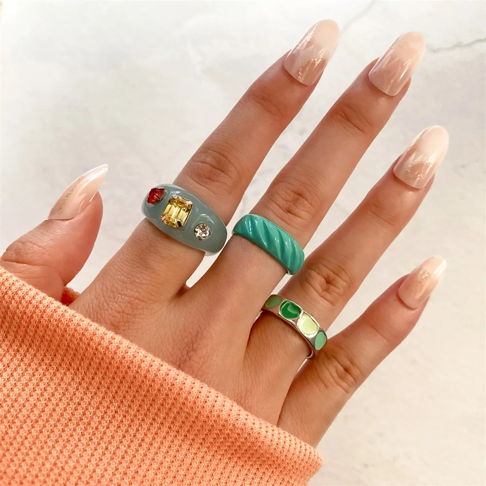 Набор Колец IPARAM в виде сердца из разноцветной зеленой смолы для женщин, модные золотые любовные акриловые кольца на цепочке, оптовая продажа, подарочные украшения с капельным маслом