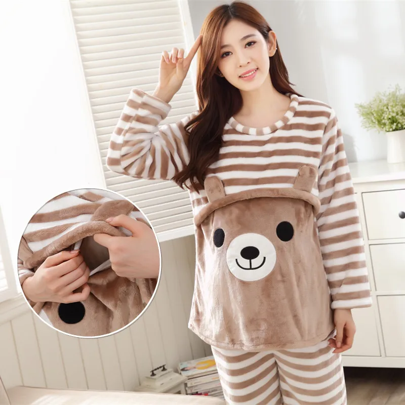 Фланелевая Пижама для беременных 2021 зимняя одежда для сна комплект для беременных женщин теплые предметы одежды для беременных грудного вскармливания
