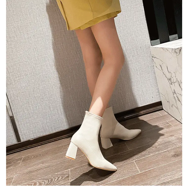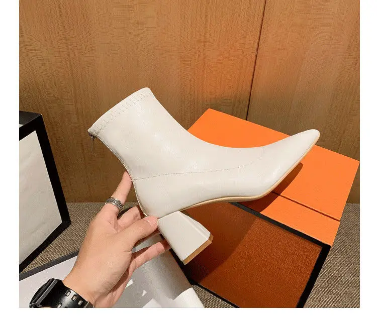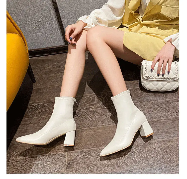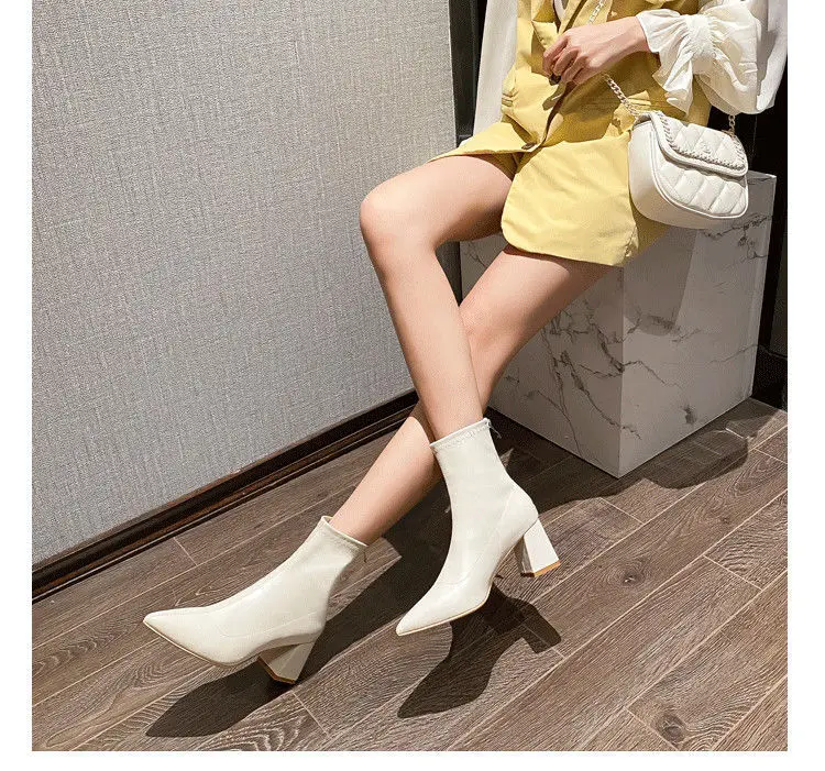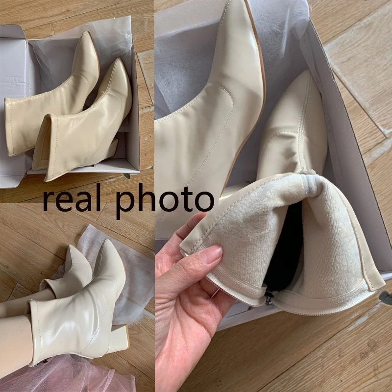 Белые короткие сапоги на высоком каблуке, женские осенне-зимние остроносые женские сапоги, плюшевые новые тонкие сапоги, новинка 2021, настоящие сапоги Martn