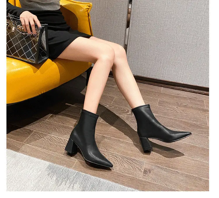 Короткие сапоги на высоком каблуке, женские осенне-зимние сапоги с ...