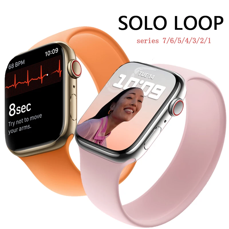 Ремешок силиконовый Solo Loop для Apple Watch Band 7, Эластичный Силиконовый Браслет для iWatch band 7 6 5 4 3 SE, 45 мм 41 мм 44 мм 40 мм 38 мм 42 мм