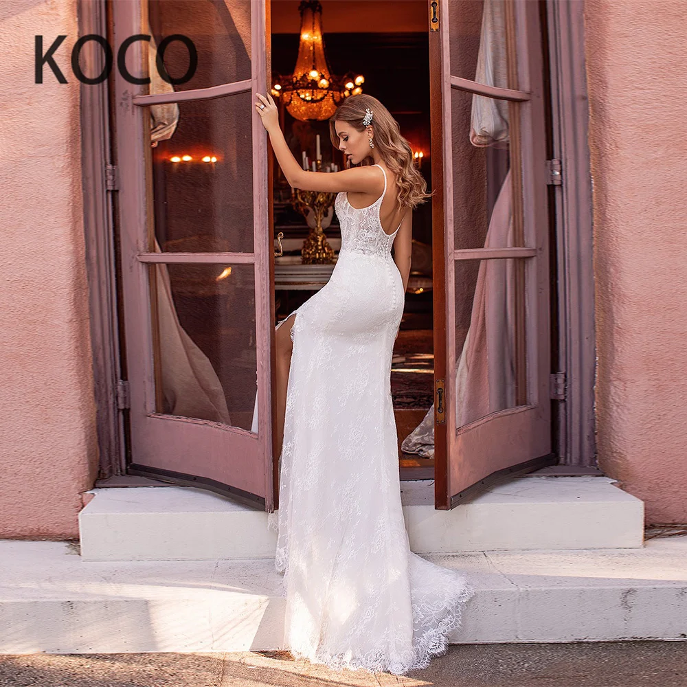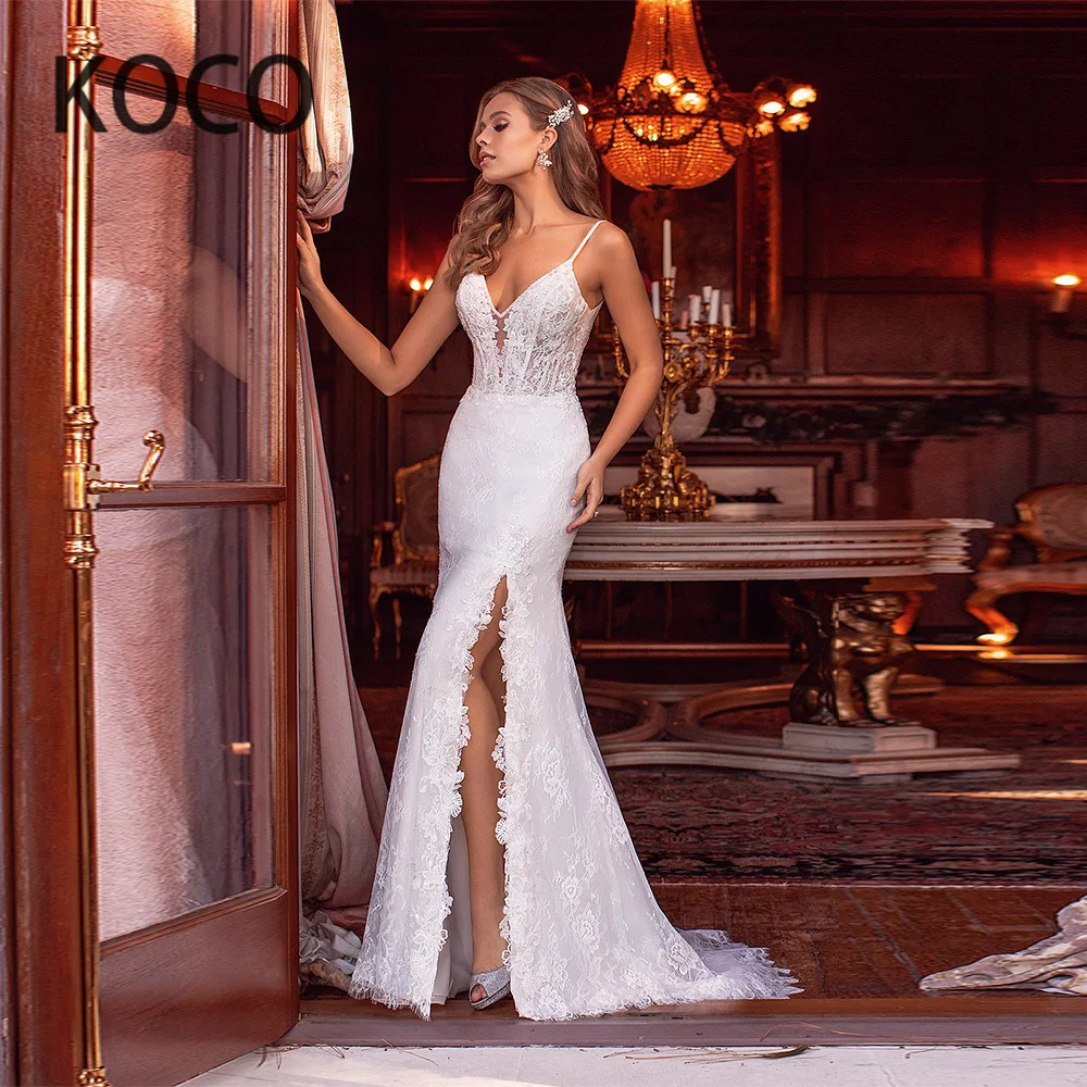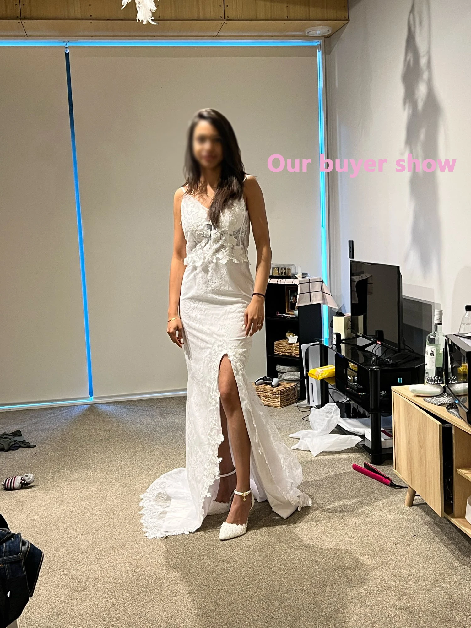 Женское кружевное платье-Русалка MACDUGAL, элегантное пляжное платье невесты с V-образным вырезом и цветочным узором, платье невесты, 2021