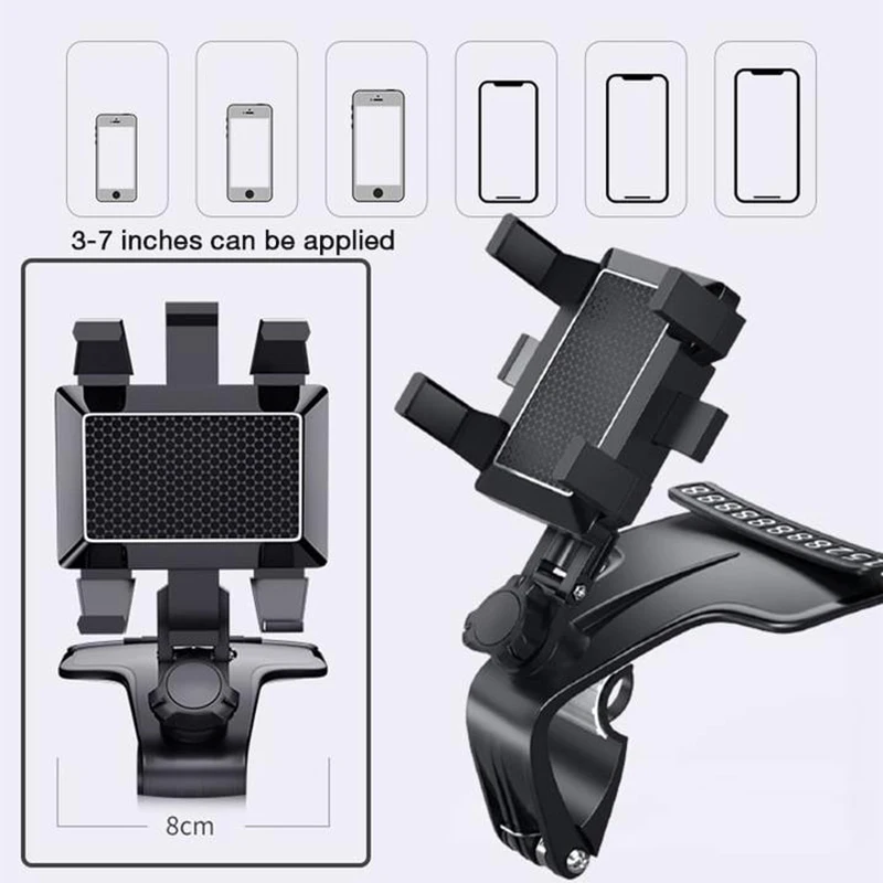 Зажим на держателе телефона этой приборной панели выдвижной, что делает его совместимым с любым 3-7 дюймовый мобильный телефон.