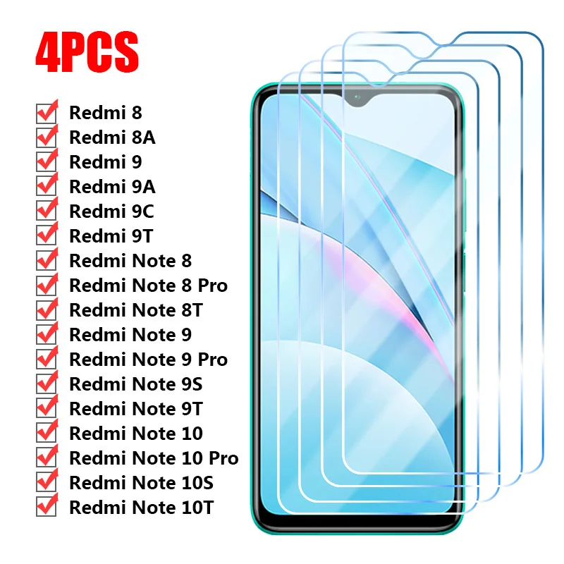 4 шт. закаленное стекло для Xiaomi Redmi Note 10 9 8 7 6 Pro 9A 9C ...