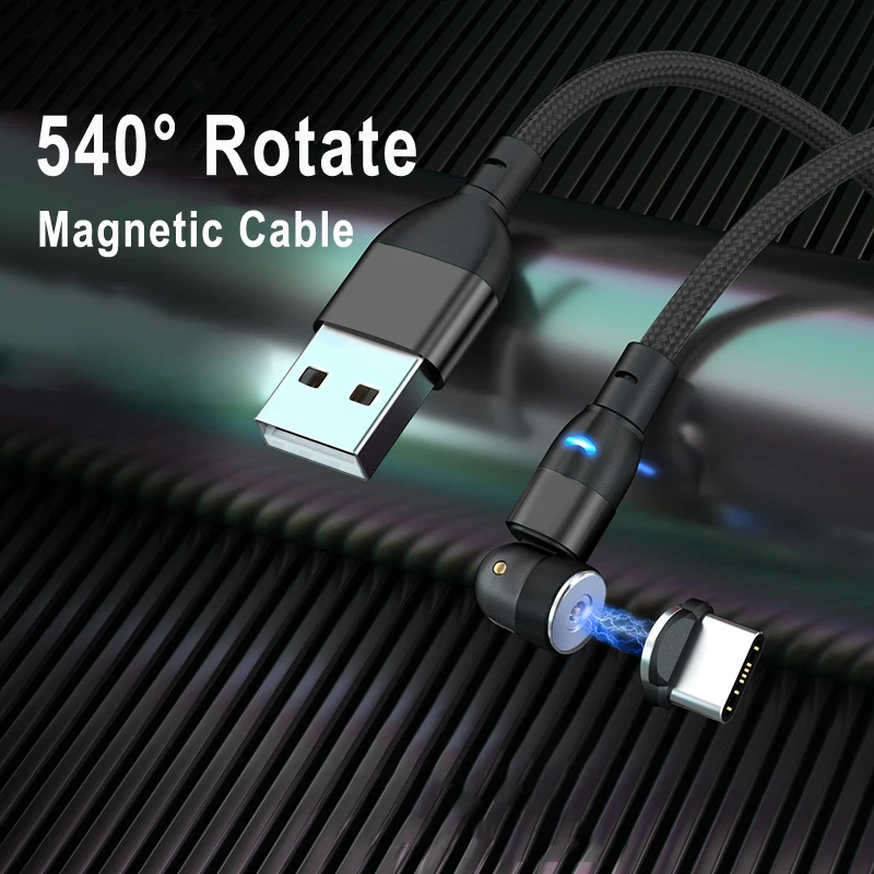Вращающийся на 540 Магнитный USB-кабель типа C для Samsung A32, A52, A72, A12, аналогичный Xiaomi Redmi Note 10S, 10, 9, 8 Pro, USB-кабель для зарядки телефона