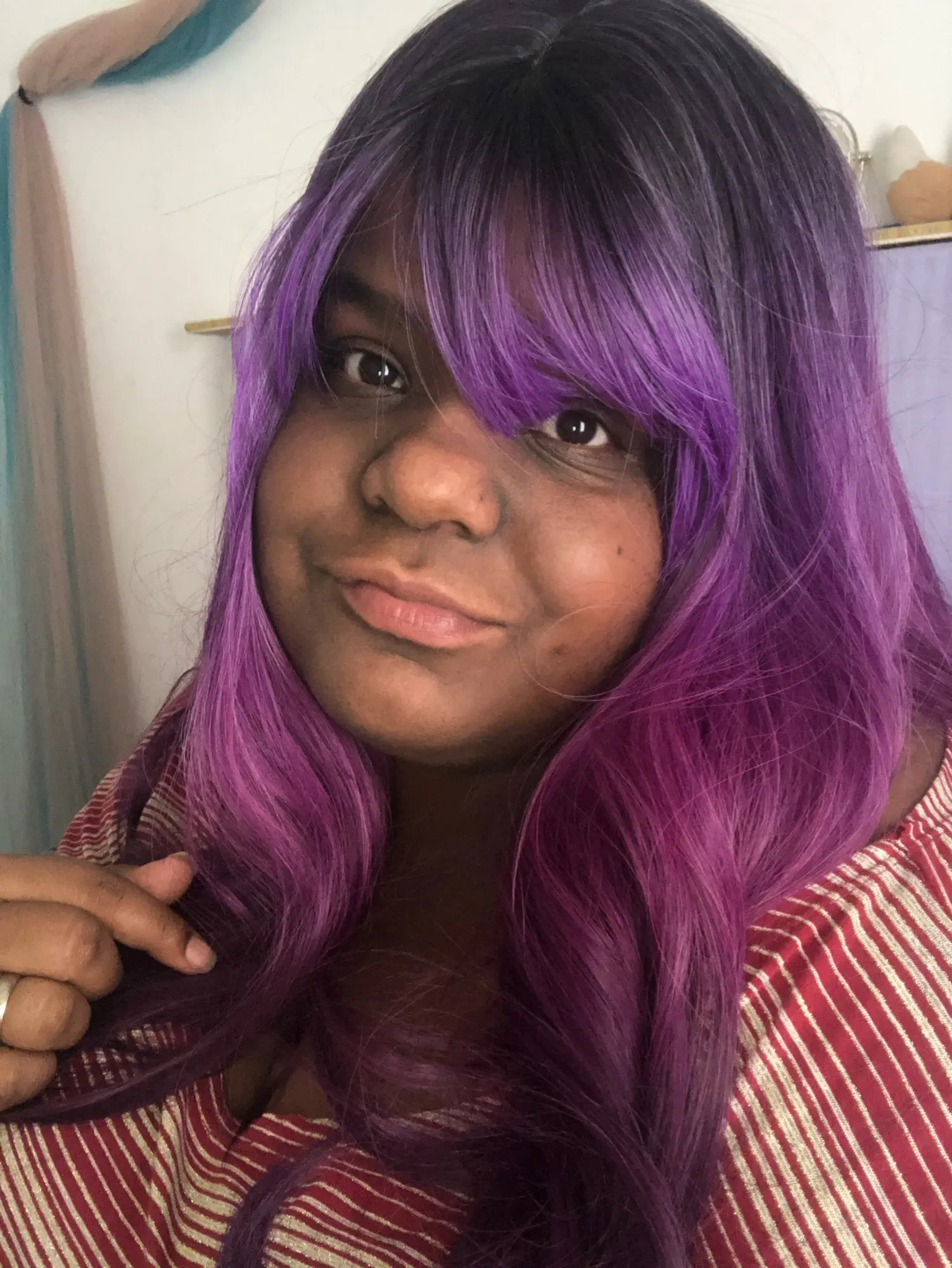 Длинный волнистый объемный Серебристый Фиолетовый синтетический пар...