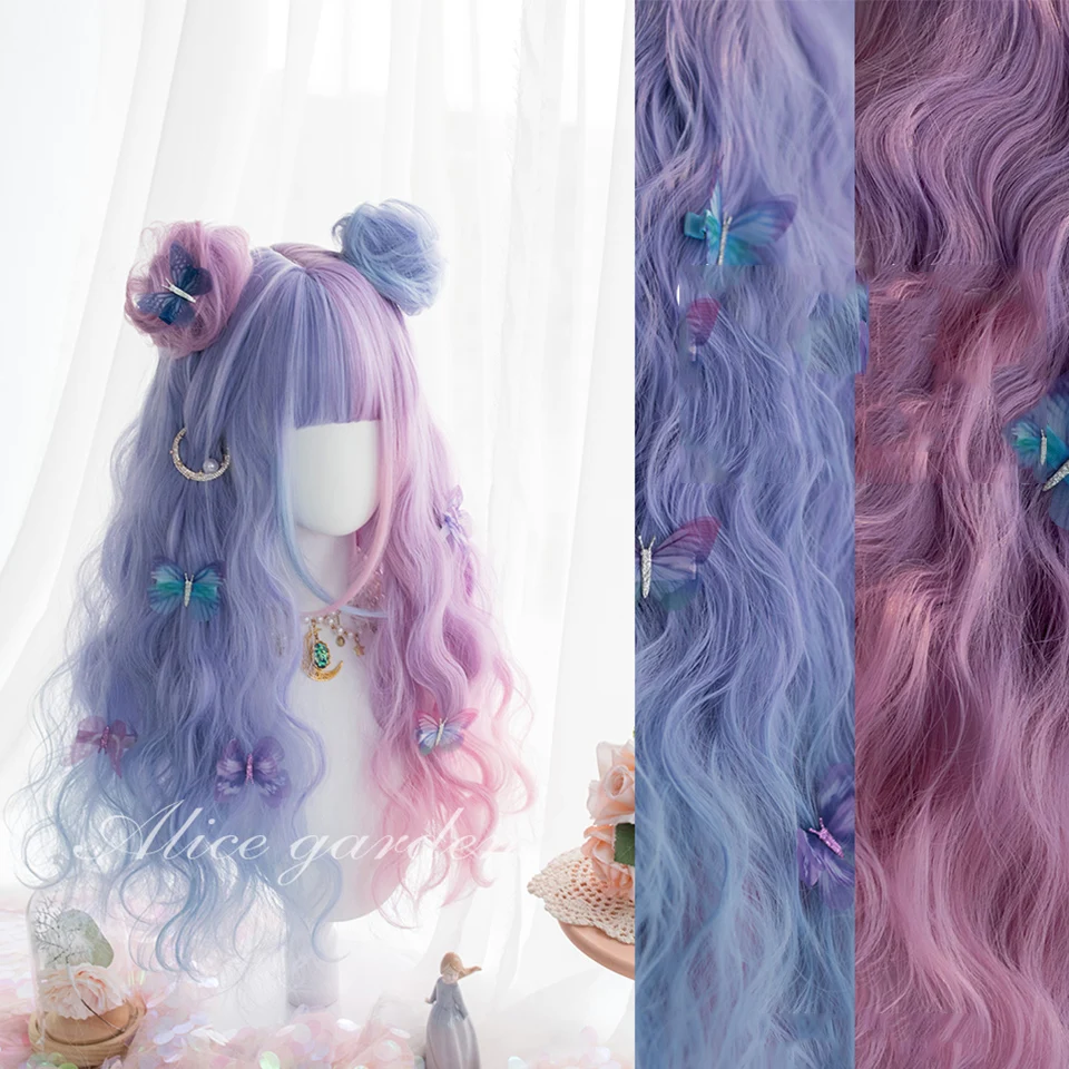 Длинная кудрявая розово-синяя челка HOUYAN с зажимом маленький пари...