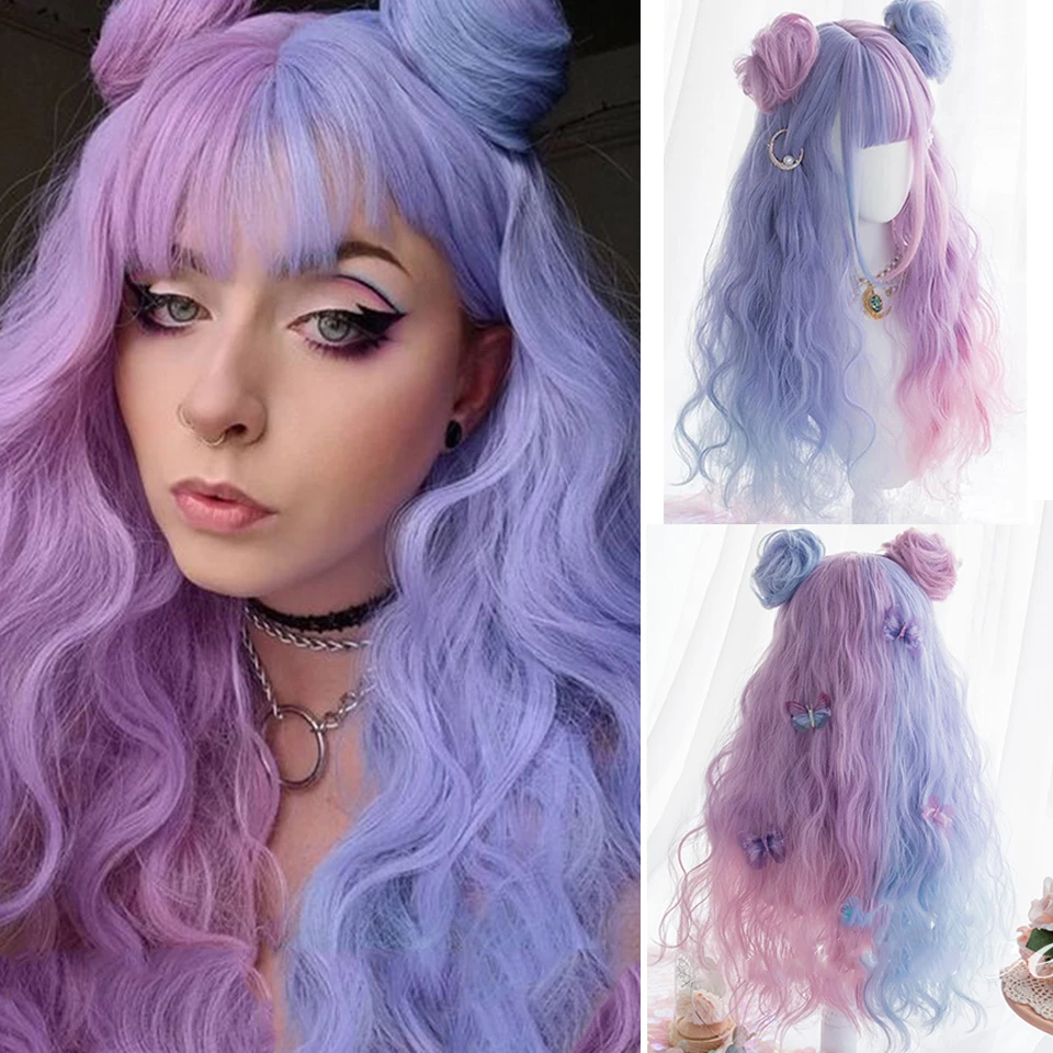 Длинные кудрявые челки HOUYAN с маленькой пучкой волос розовый фиолетовый синий парик женский косплей синтетические устойчивые к высоким температурам