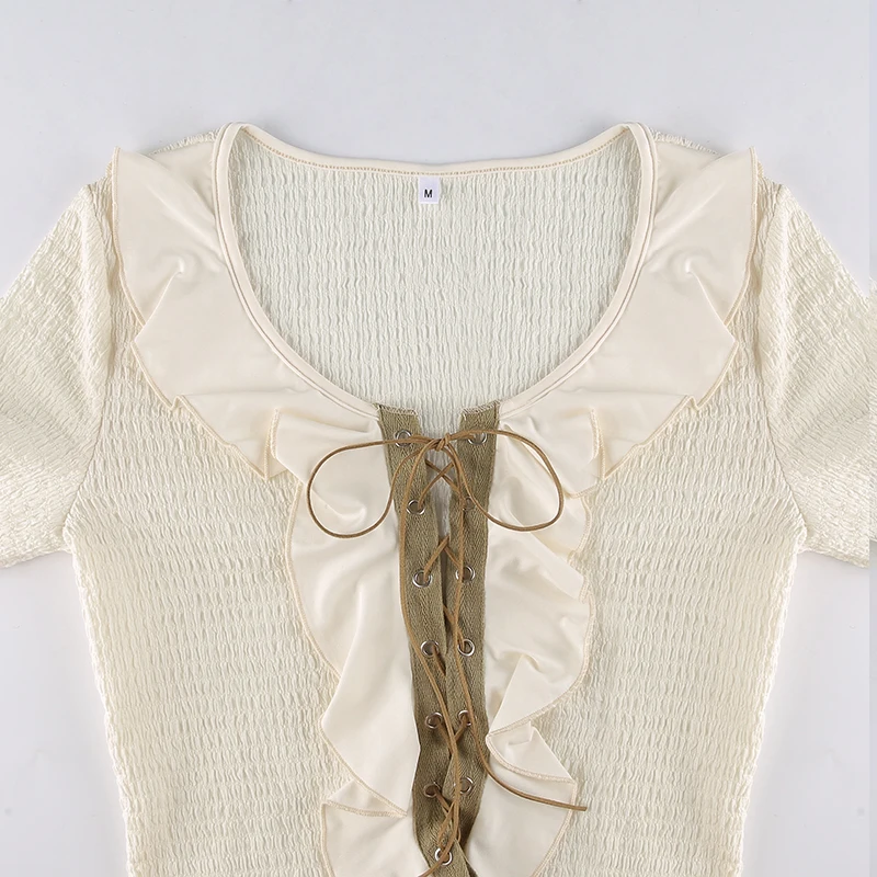 Укороченные топы в рубчик спереди в стиле ретро, футболки с оборкам...