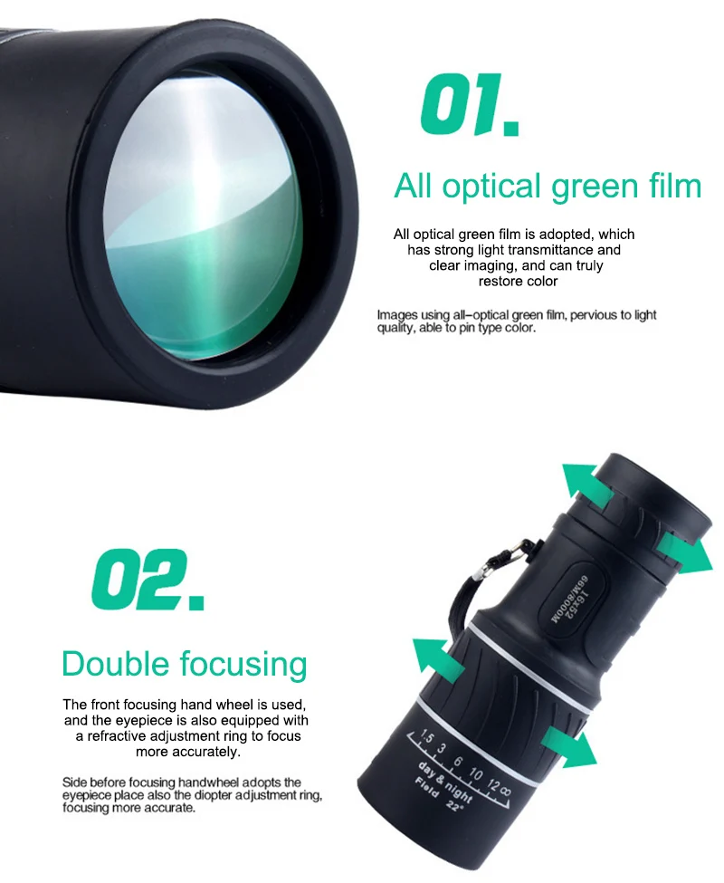 Сверхдлинный спортивный охотничий Монокуляр 16X52 с фокусировкой и ночным видением
