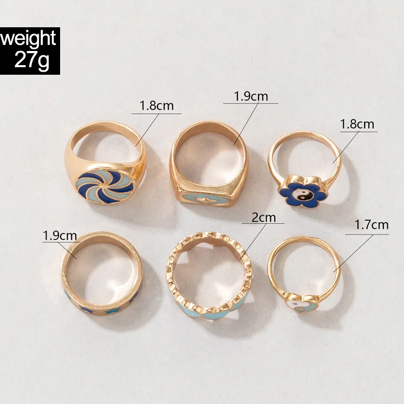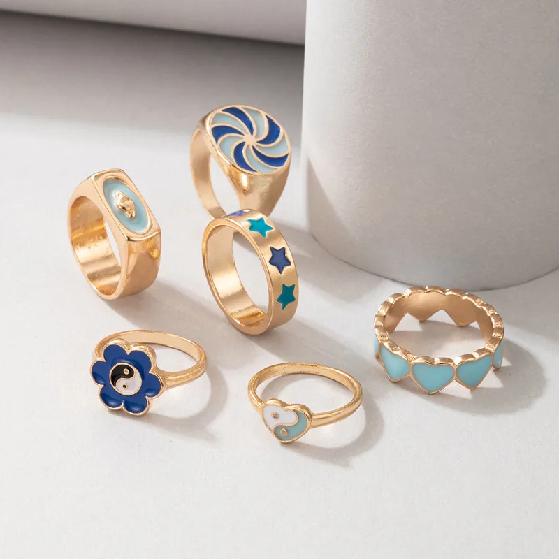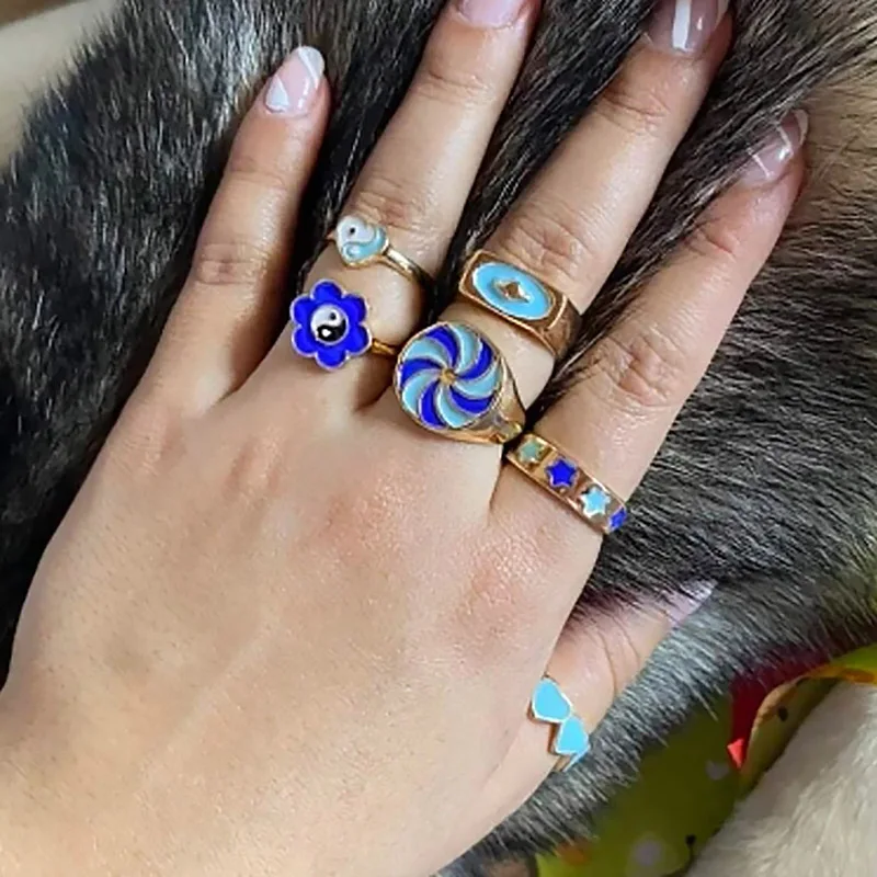 Милые кольца в стиле INS y2k синие капли масляное сердце Tai Chi подходящие знаки для девочек-подростков корейские трендовые ювелирные изделия оптом