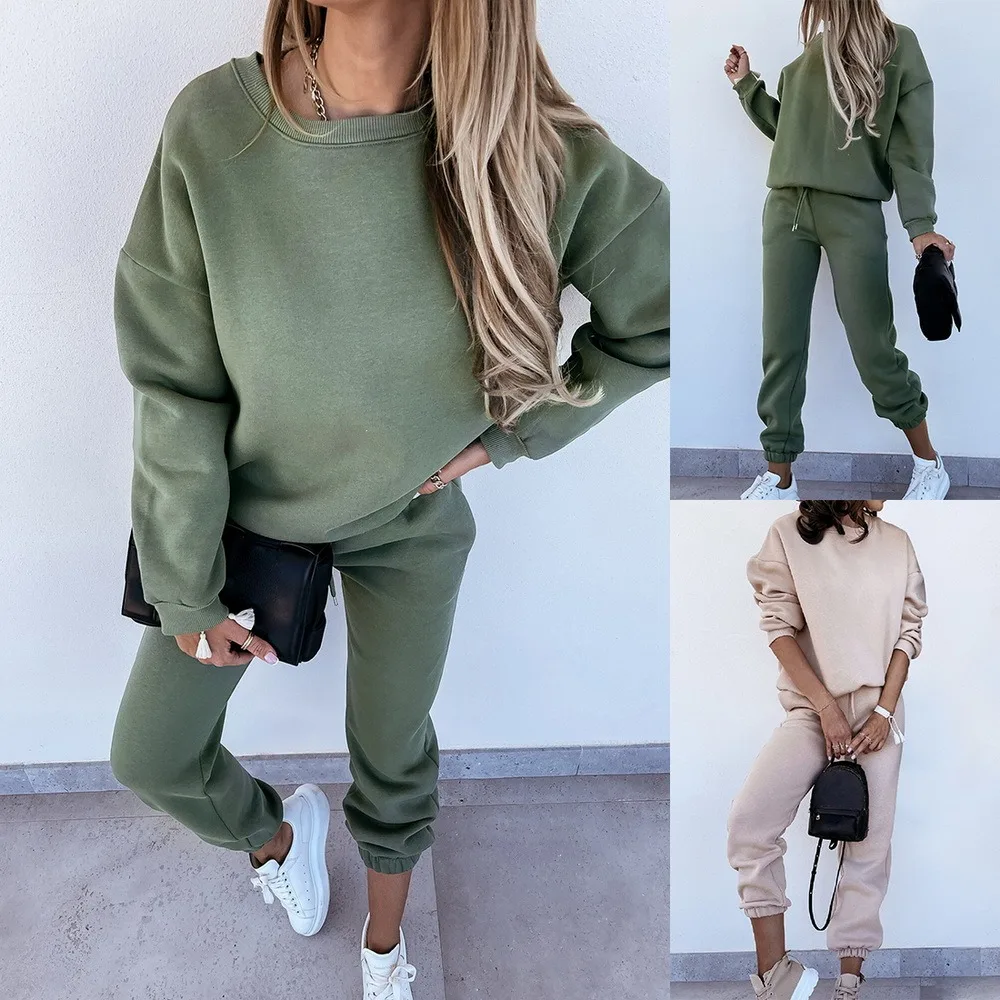 Women Solid Sets For WomenWarm Hoodie Sweatshirts And Long Pant