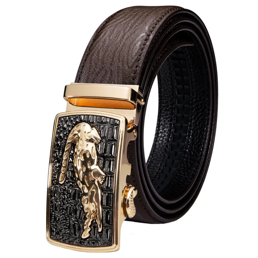 Hi-Tie коричневые мужские ремни из натуральной кожи, дизайнерские автоматические ремни с пряжкой, пояс для платья, джинсовый костюм, мужской ремень высокого качества