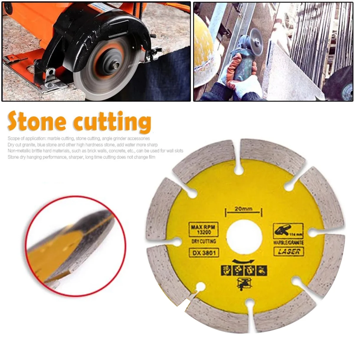 【Premium material】 алмазное режущее лезвие изготовлено из высококачественного и прочного термообработанного алмаза, который обеспечивает гладкую, быструю, чистую резку и длительный срок службы резки.
