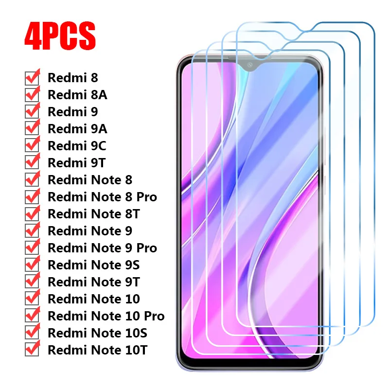 4 шт. закаленное стекло для Redmi Note 10 10 Pro 9 9 Pro 8 8 Pro 7 7 Pro 10S 9S 8S 10T 9T стеклянные пленки для Redmi 9 9A 9C 9T 8 8A 7 7A