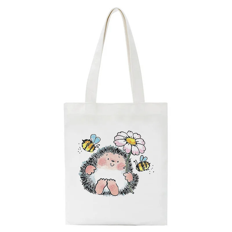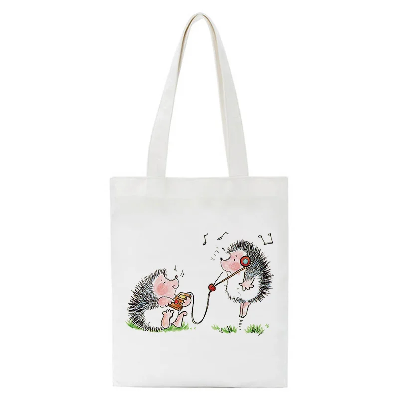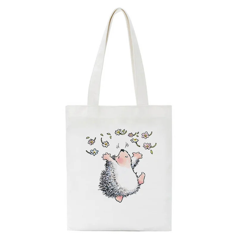 Kawaii Hedgehog Мультяшные сумки для покупок манга, сумки, холщовые сумки на плечо, женские сумки для покупок, вместительная сумка-тоут, пляжная сумка