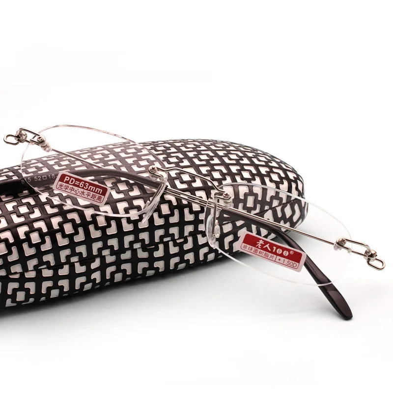 Квадратные очки для чтения Rimelss, гибкие пресбиопические очки для глаз с чехлом, прозрачные линзы из смолы, Безрамная стеклянная оправа для мужчин