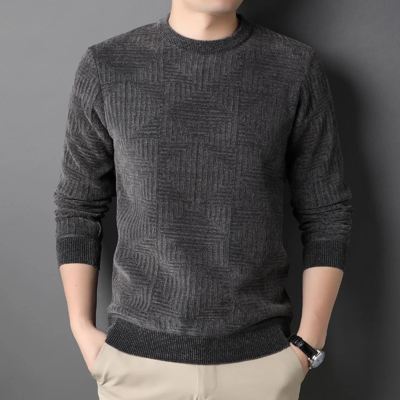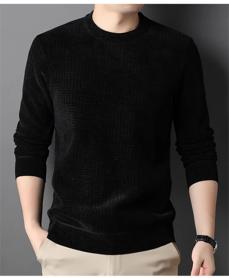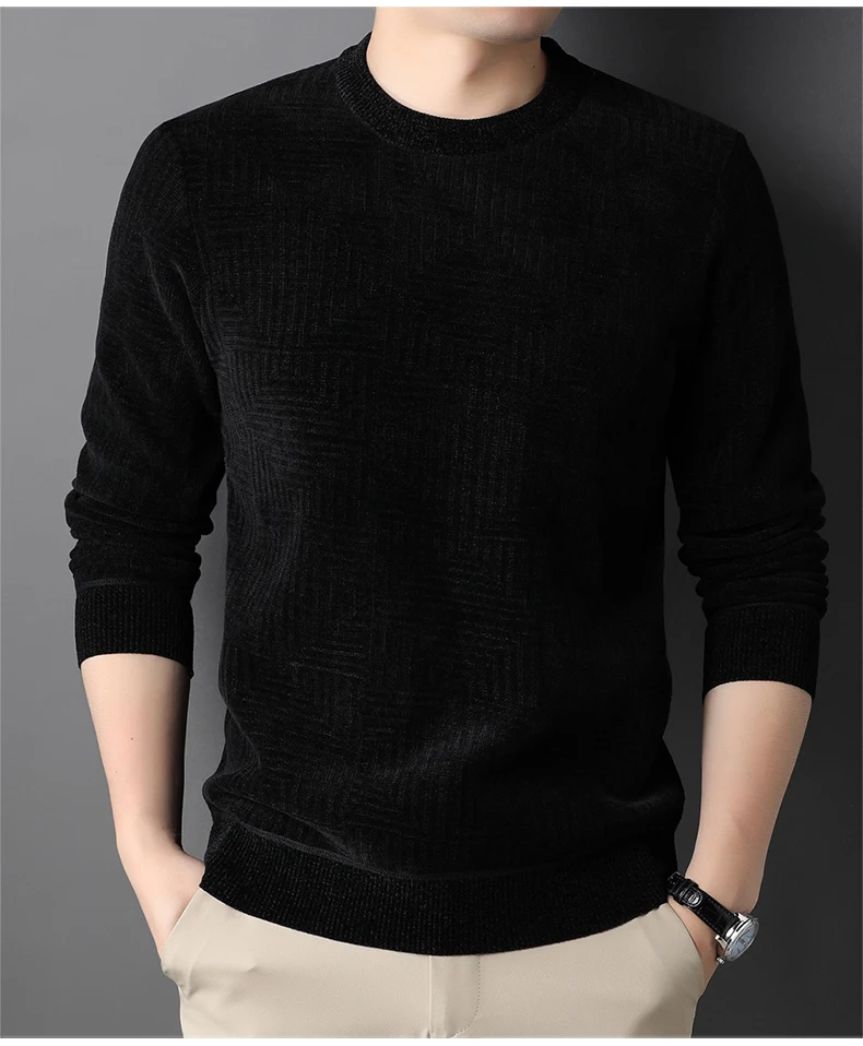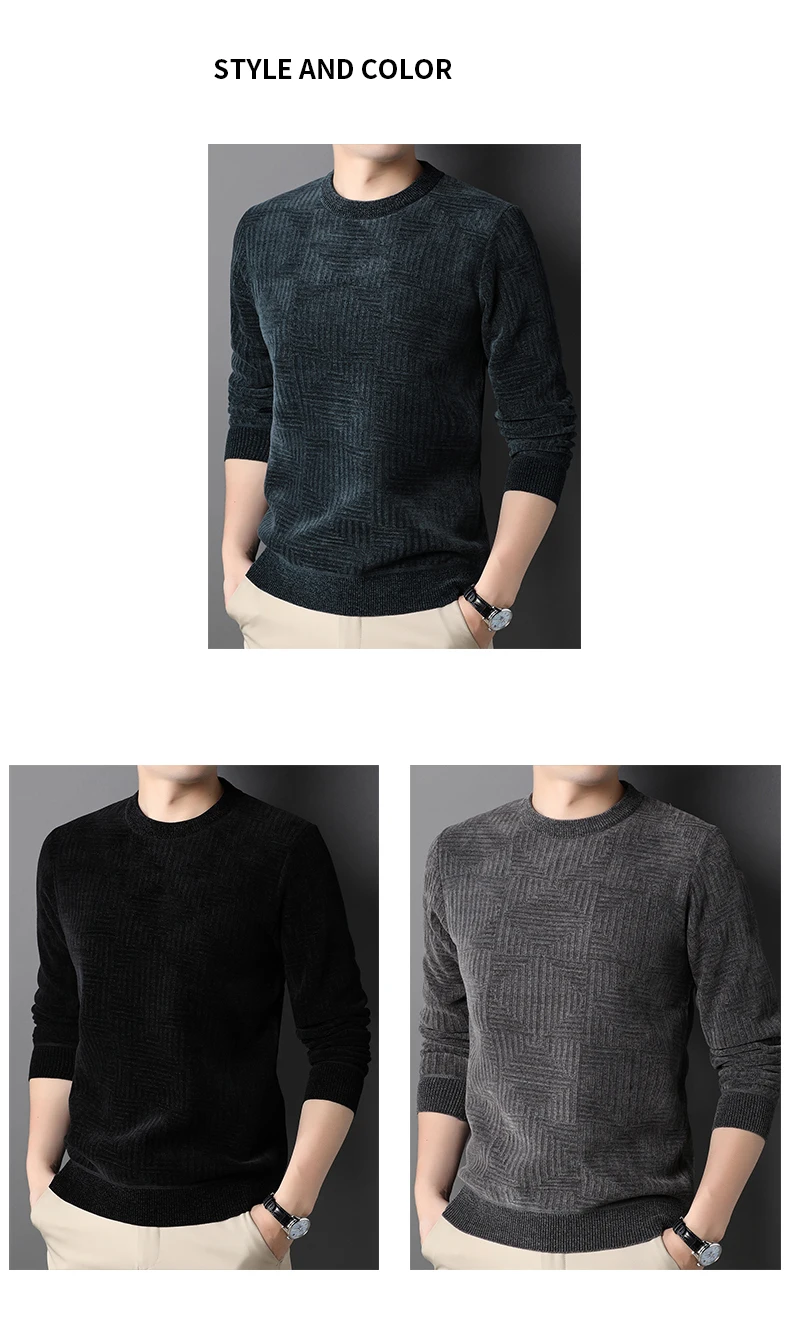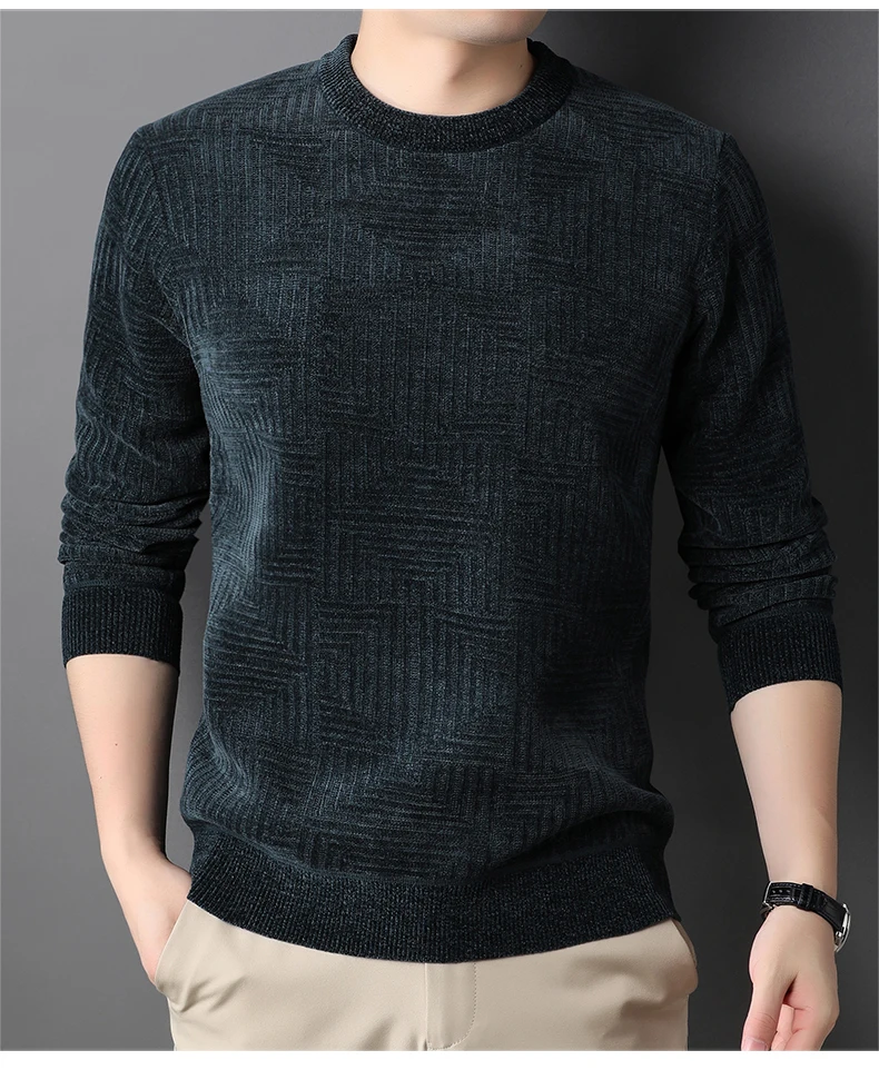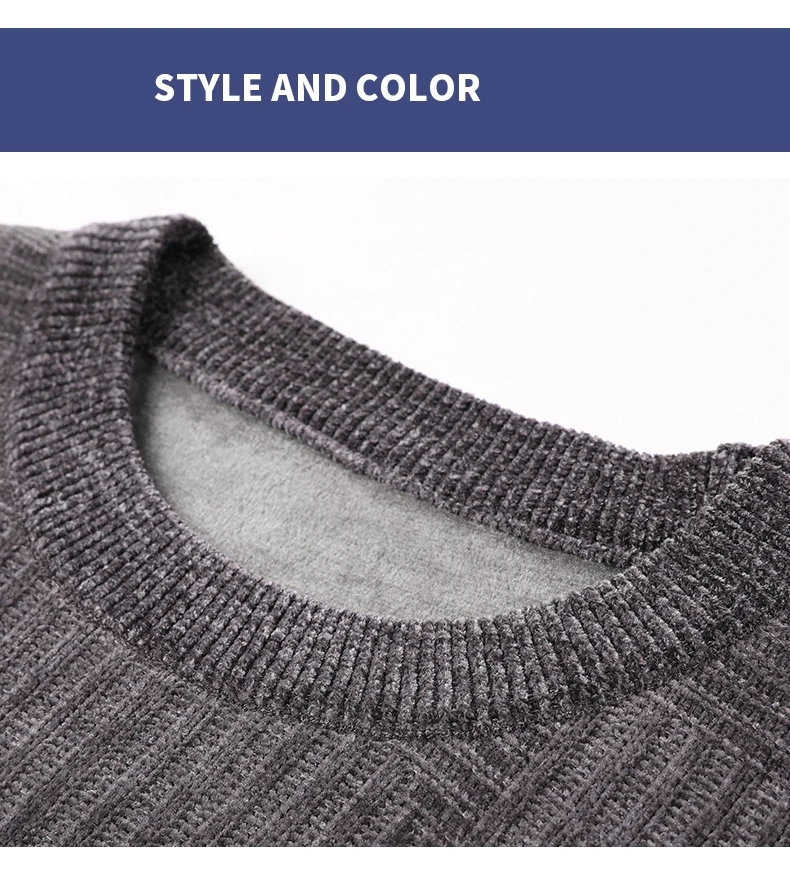 Свитер мужской зимний с флисовой подкладкой и круглым вырезом, Y382