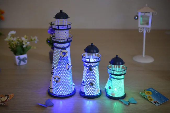 Креативный Средиземноморский маячок, железный светодиодный светильник, жестяной светильник, подсвечник для дома, свадьбы, кафе, бара, настольное украшение