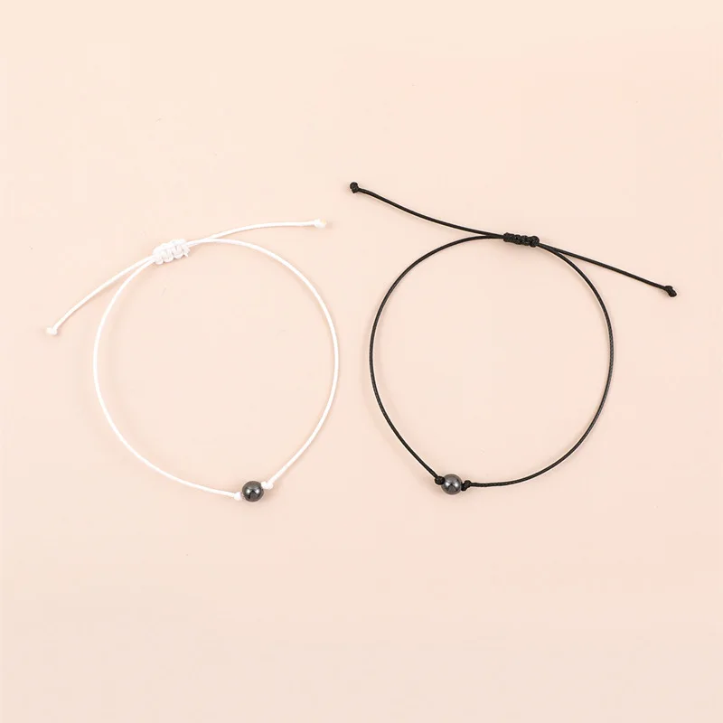 Браслет с Бусиной из гематита, черная нить, браслет для пары, магнитный, регулируемый