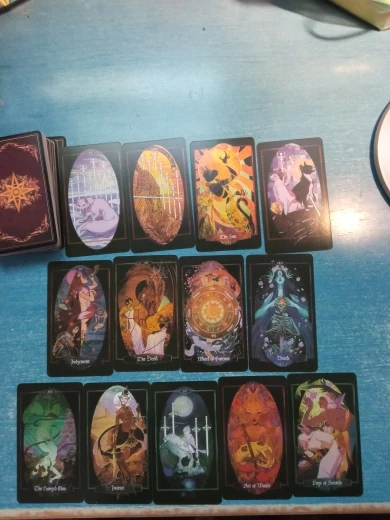 Коробка прибыла помятая из четырех углов. Карты очень красивые и цвета очень яркие, однако углы почти всех карт имеют дефекты, как будто они были плохо вырезаны, а также мне придется очистить их один за другим, потому что они покрыты белыми велосипедами, я полагаю, из остатков картона, когда они были вырезаны. Я понимаю, что это дешевые карты, но за эту цену я купил много других, которые приходят ко мне в идеальном состоянии. Немного разочарован, но на фото продавца, если вы посмотрите внимательно, вы можете видеть, что края карт неисправны...