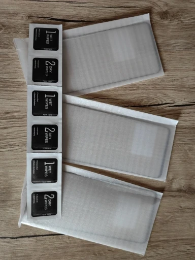 Посылка: 3 передних стекла + 3 чистящих комплекта