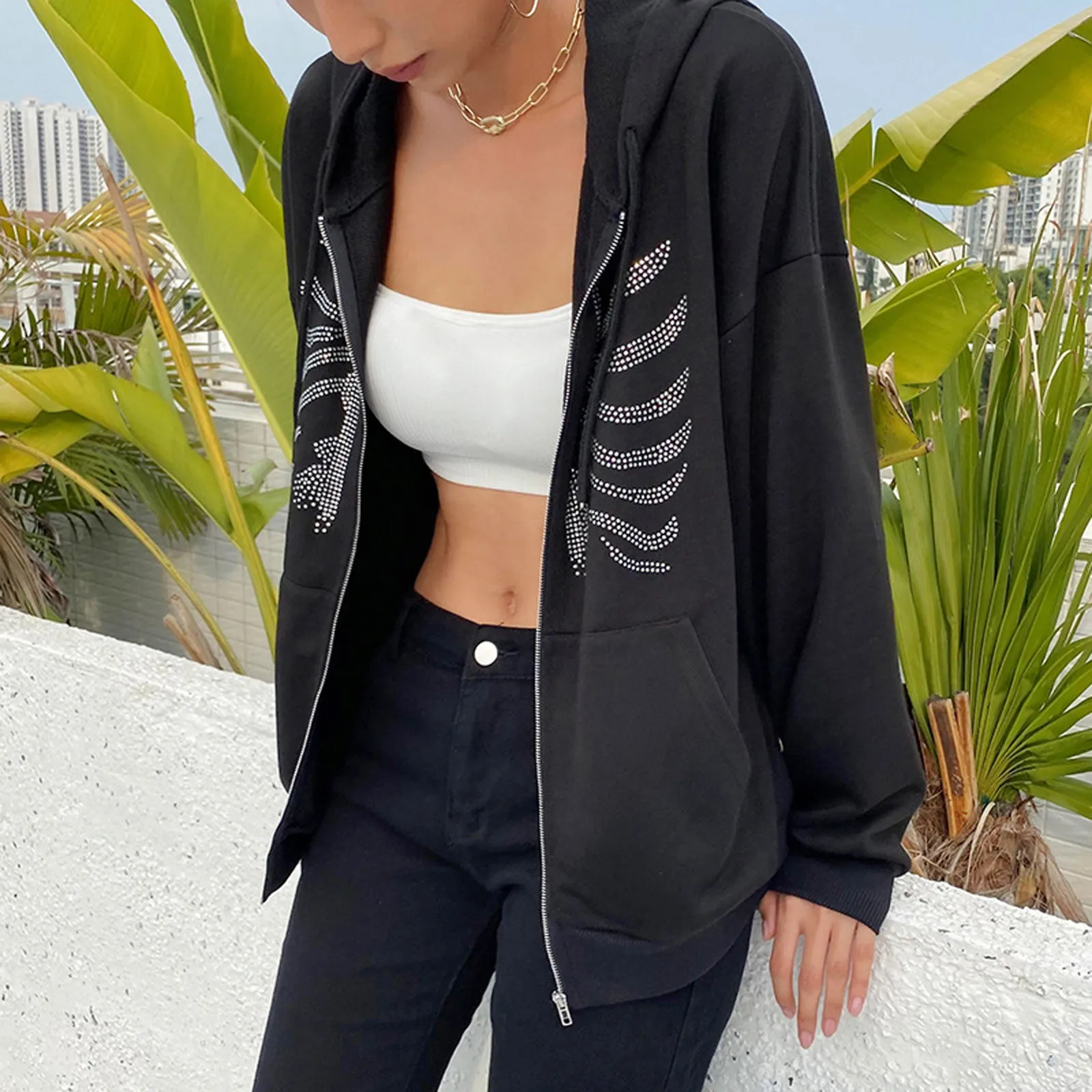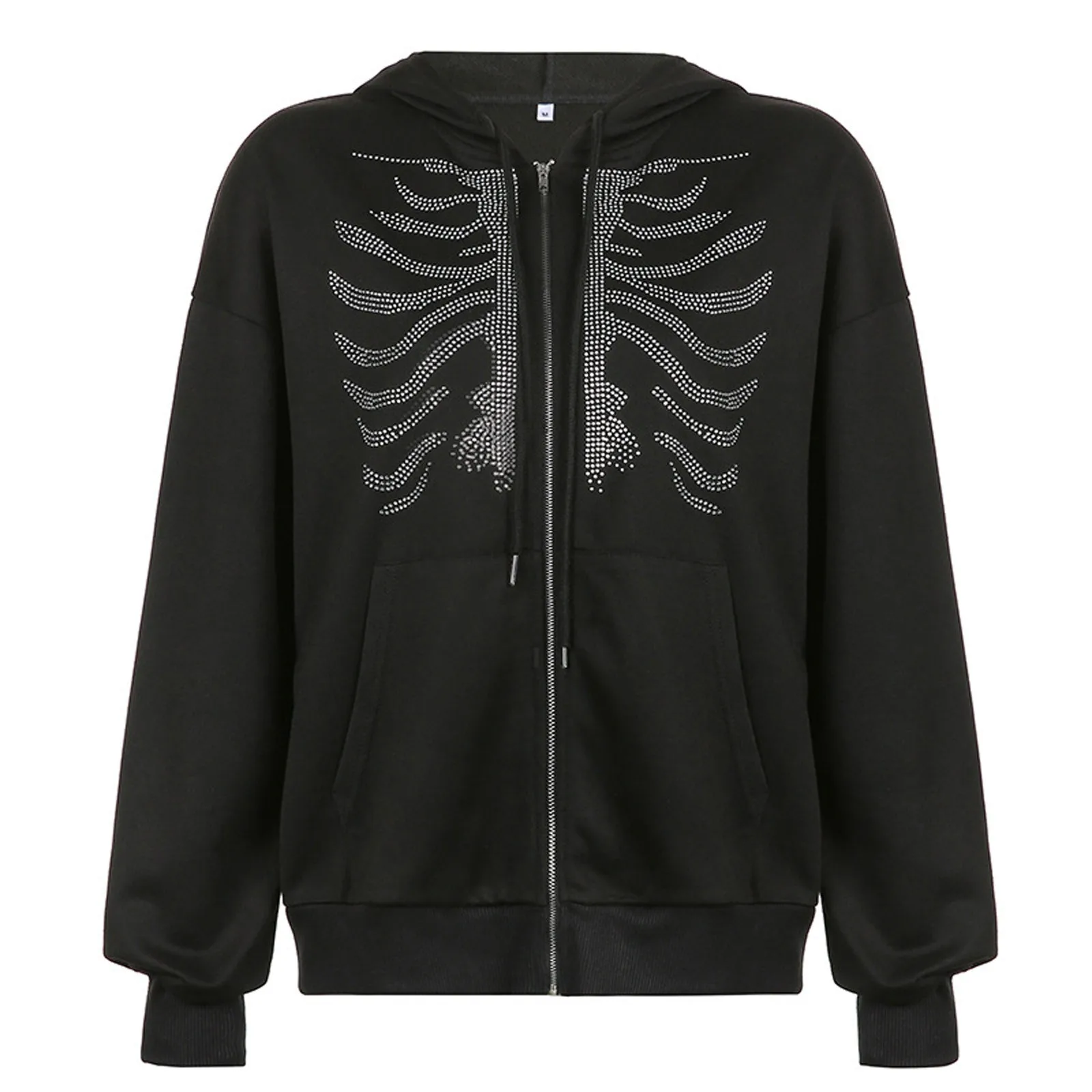 Женская толстовка с капюшоном, готическая Черная толстовка с капюшоном в стиле панк, куртка в стиле Харадзюку, свитшот на молнии, 2019