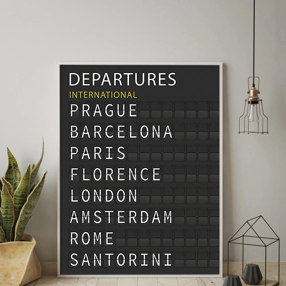 Художественные принты для путешествий, место отправления аэропорта, холщовая картина, Нью-Йорк, Сан-Франциско, печатная картина, украшение для дома
