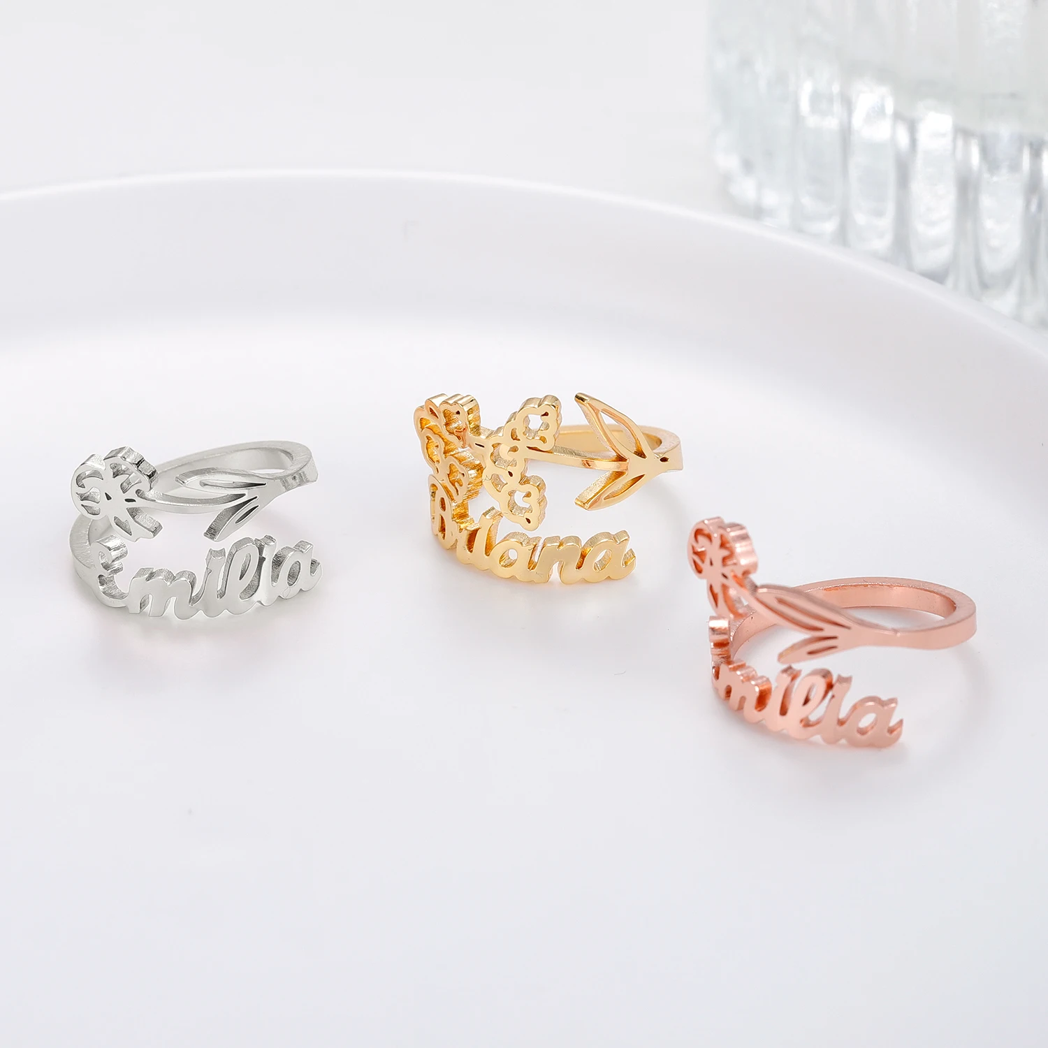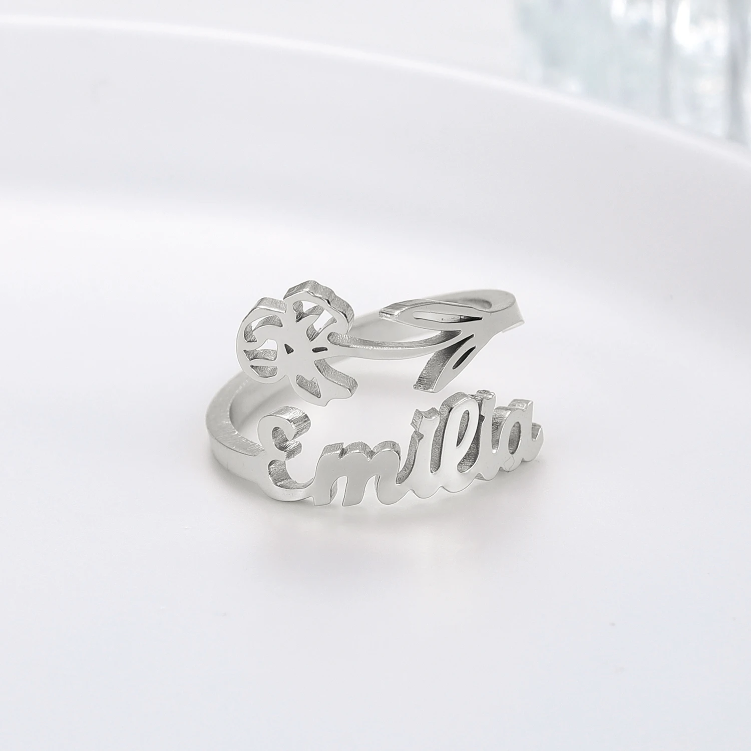Индивидуальное кольцо с именем цветка на день рожденияиндивидуальное уникальное кольцо с цветком на заказдля девушки, жены, мамы, подарки, эффектные ювелирные изделия, регулируемые