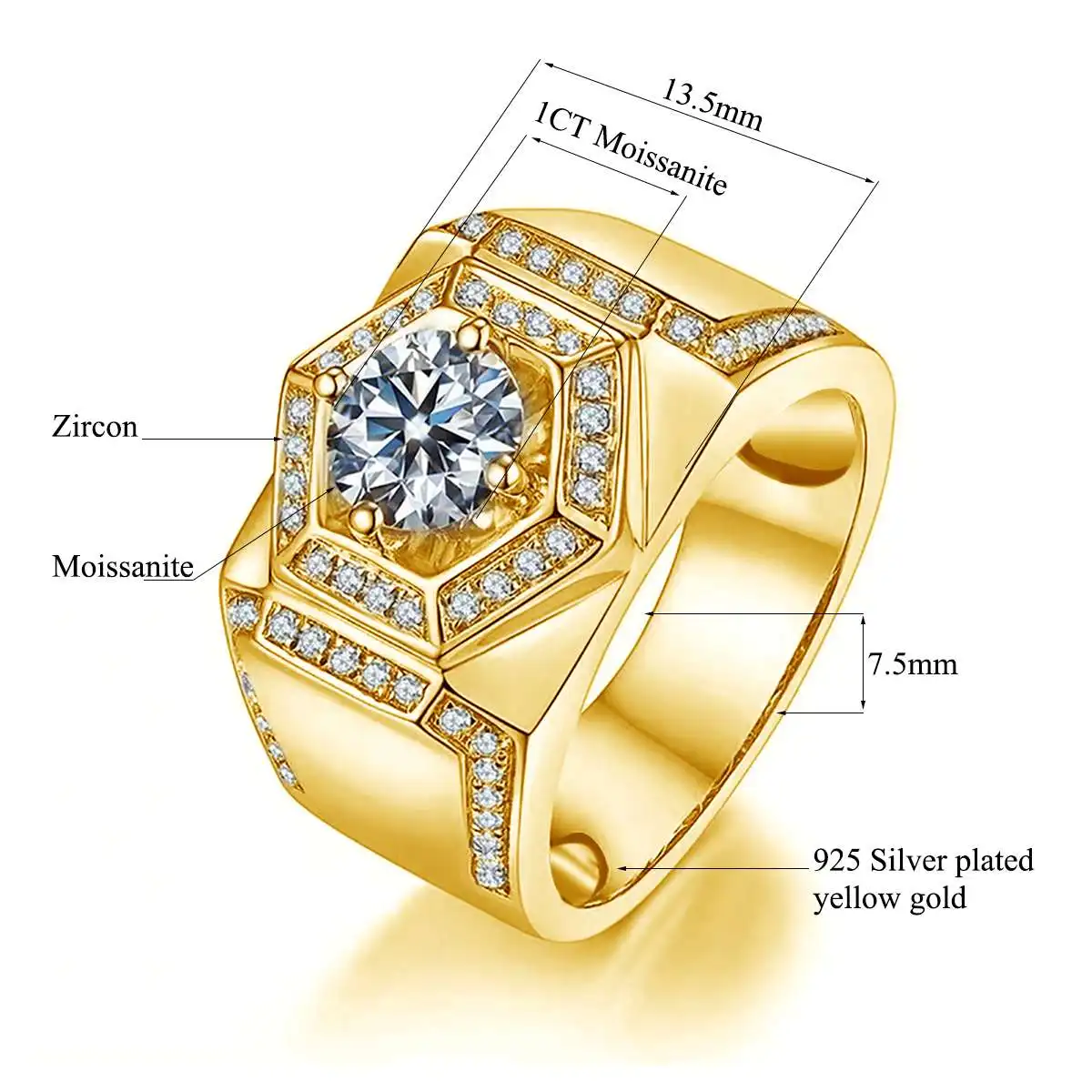 Кольца Szjinao мужские из серебра 925 пробы, с сертификатом 1 карат, Муассанит
