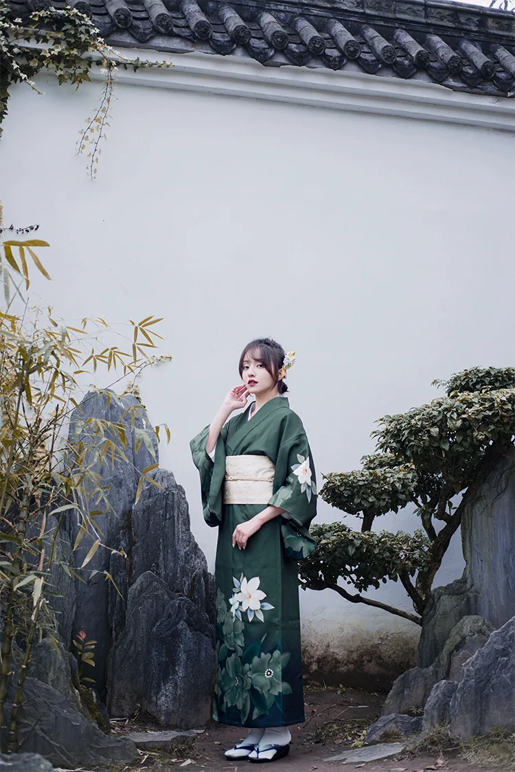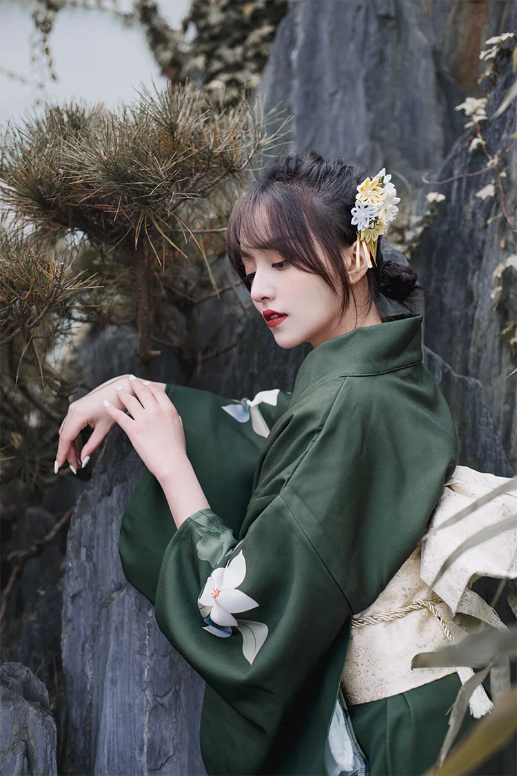 Женское традиционное кимоно в японском стиле, зеленое винтажное платье для фотосъемки, одежда для косплея, одежда для представлений