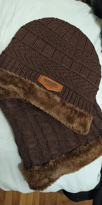 Лыжная шапка и шарф 2 шт., зимняя теплая кожаная мужская вязаная шапка, шапка, теплая шапка, шапочки, облегающие шапки