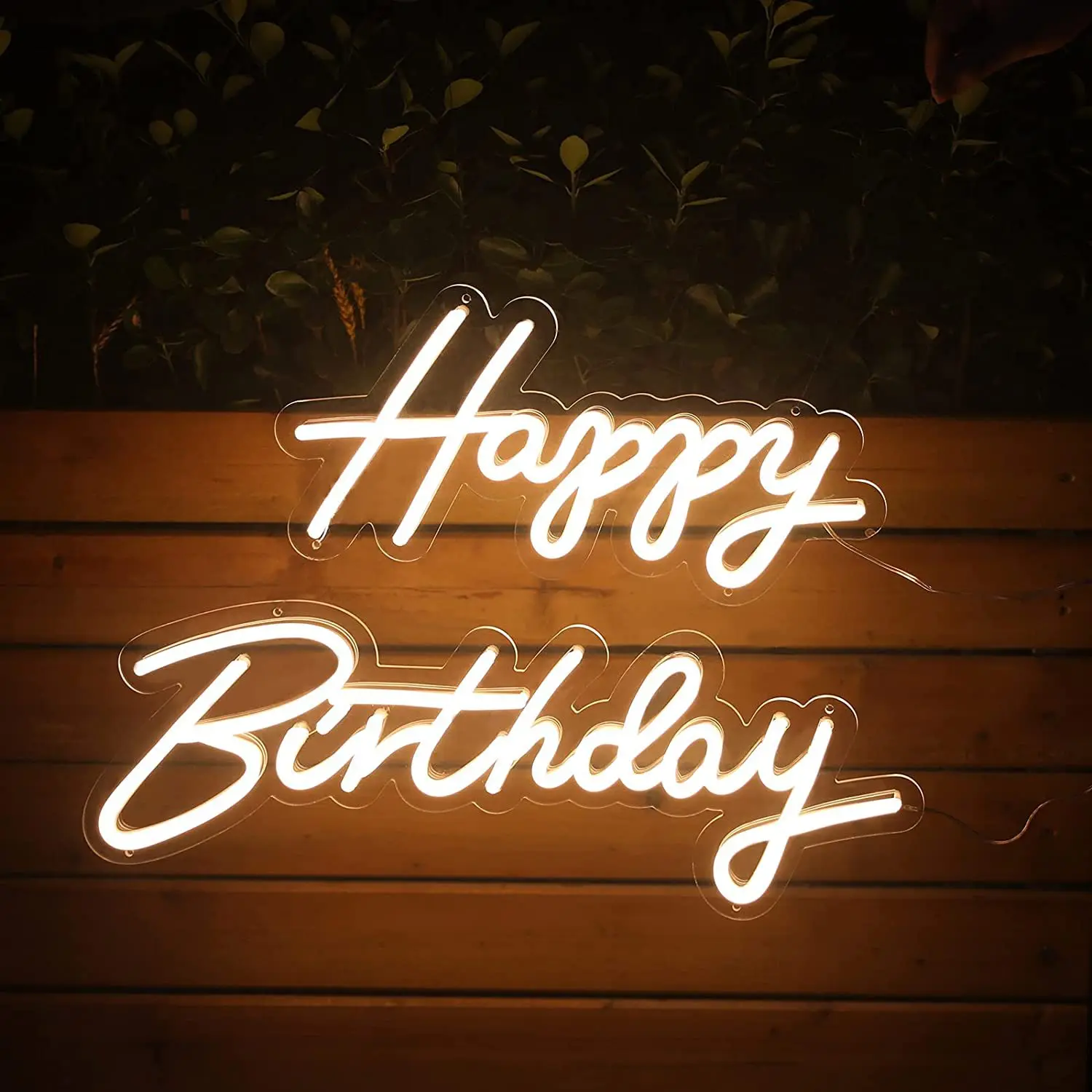 Светодиодные неоновые вывески на день рождения, прозрачные акриловые неосветильник световые вывески для вечерние ринки, 23x16 дюймов, украшение для свадебной вечеринки